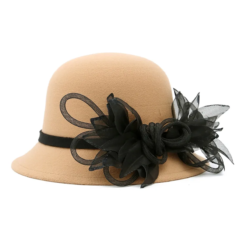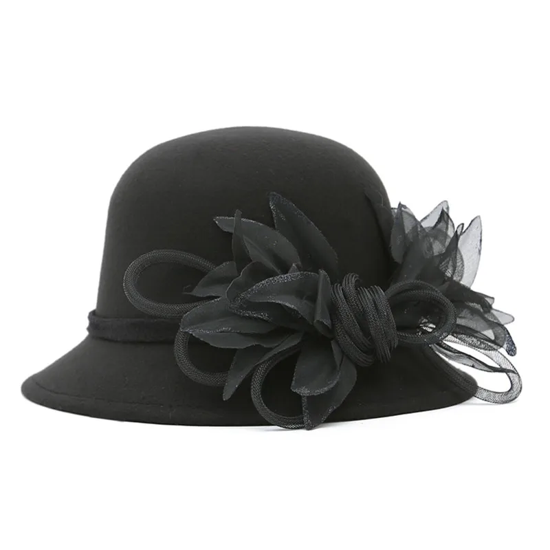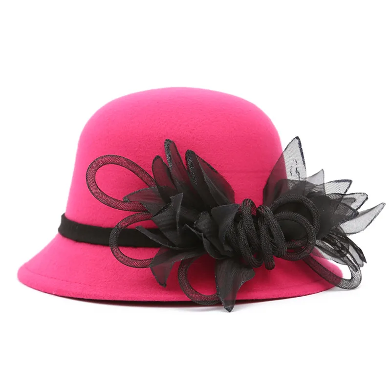 Новинка; Сезон осень-зима; Женские удобные фетровые топы из полиэстера с цветочным дизайном; Женские шапки-ведра; Шляпа-федора