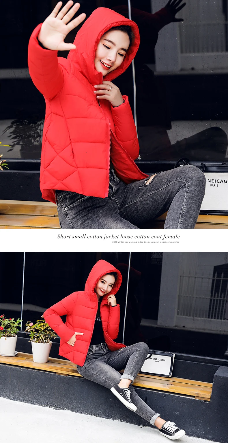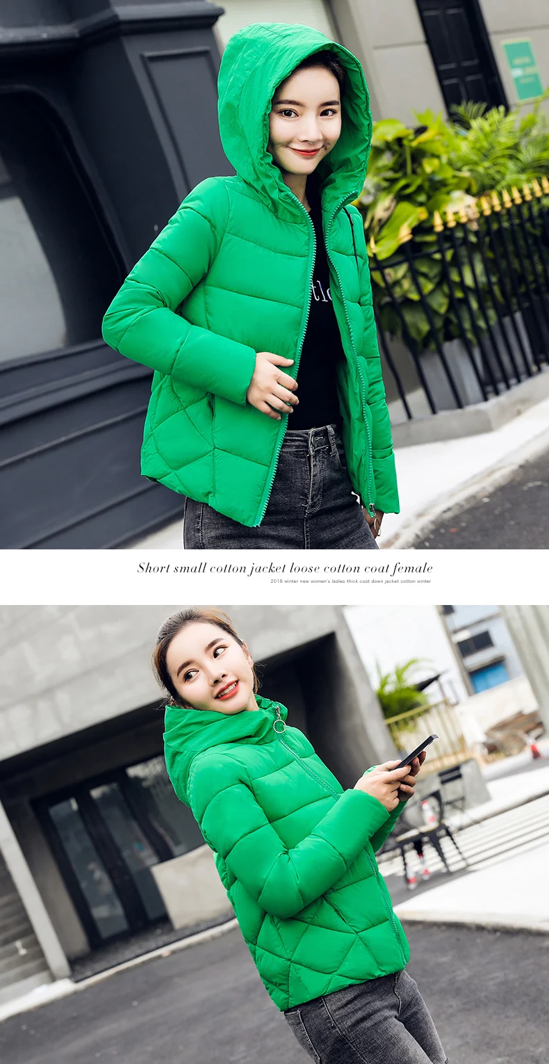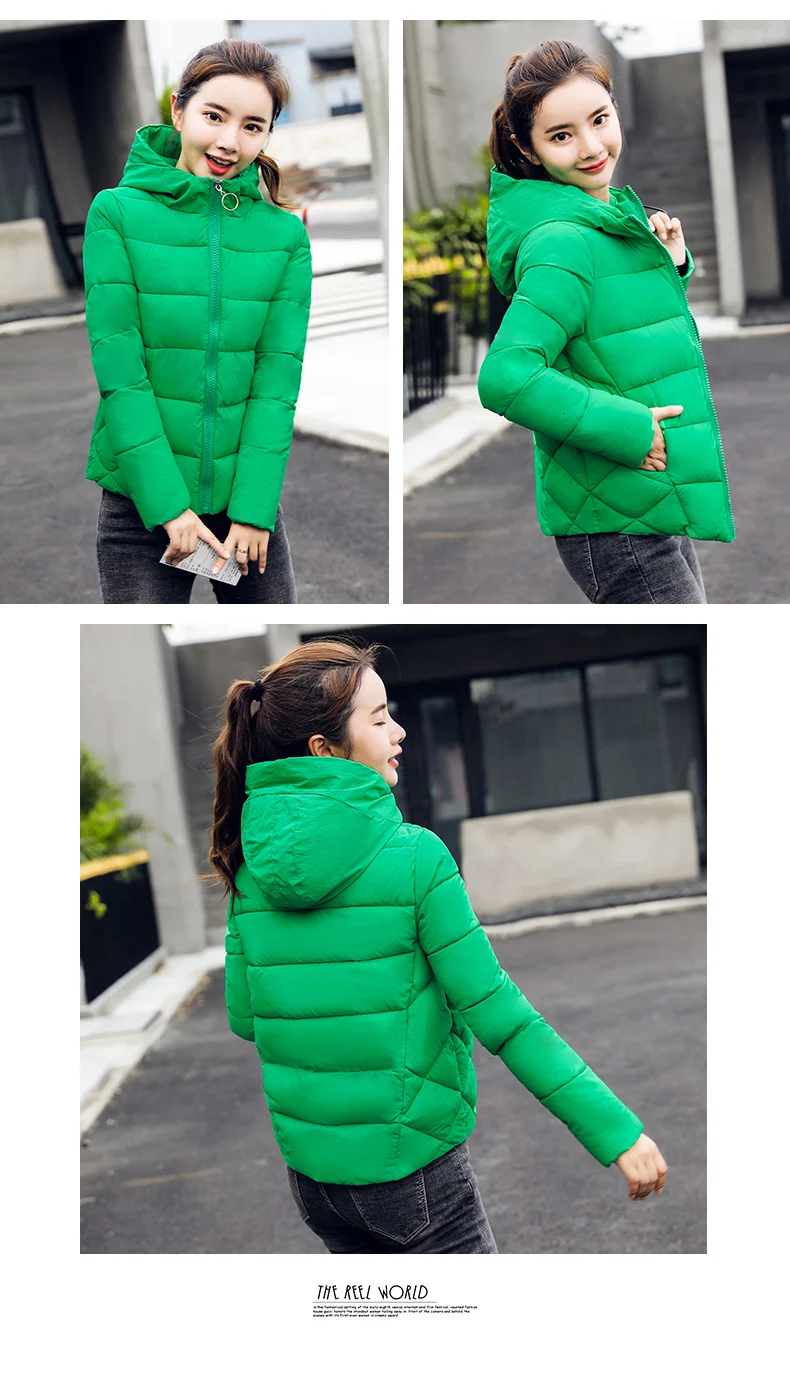 Женская зимняя куртка большого размера, красная короткая Теплая стеганая куртка с капюшоном, женское зеленое пуховое зимнее пальто на молнии, тонкая желтая черная парка
