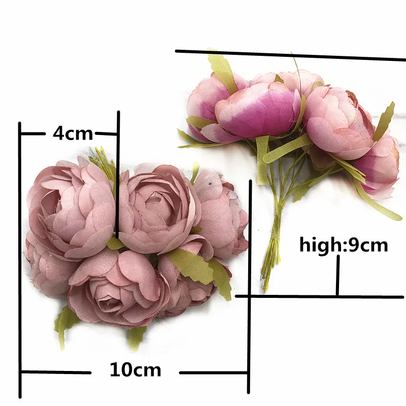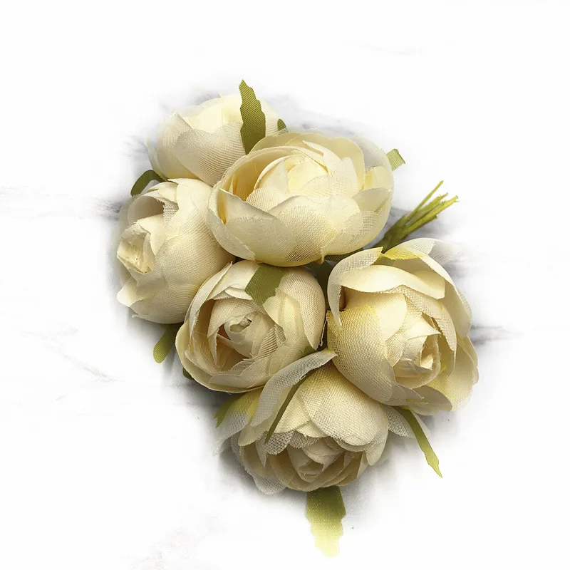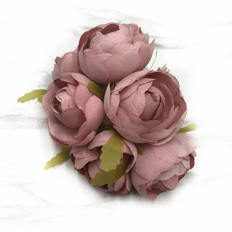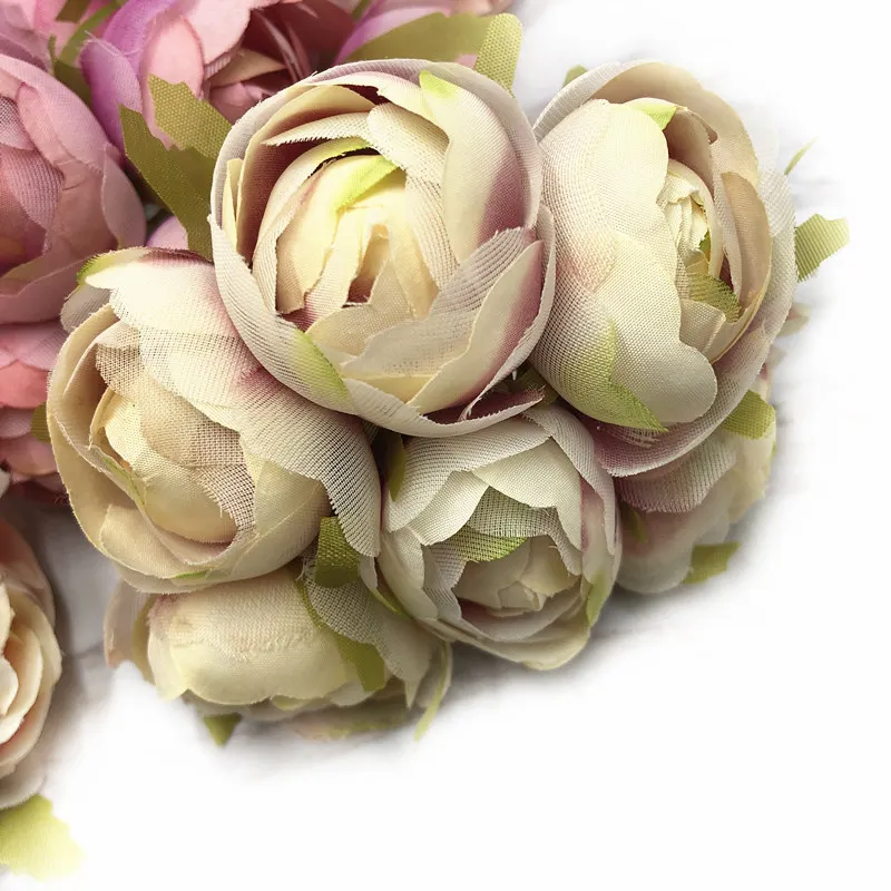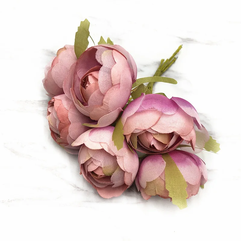 HINDJEF 6 шт. искусственный чайный Шелковый цветок в стиле ретро, роза, шелк, искусственный цветок для свадебвечерние НКИ, цветок для украшения стен, Подарочная коробка «сделай сам»