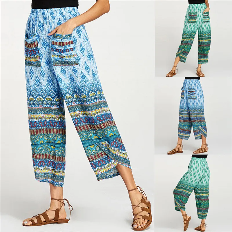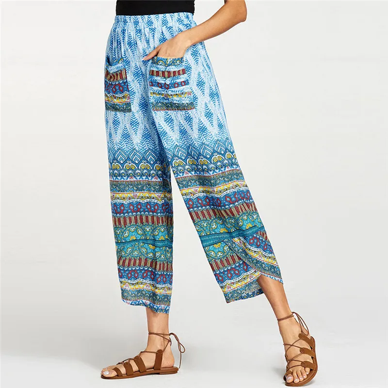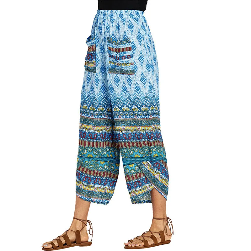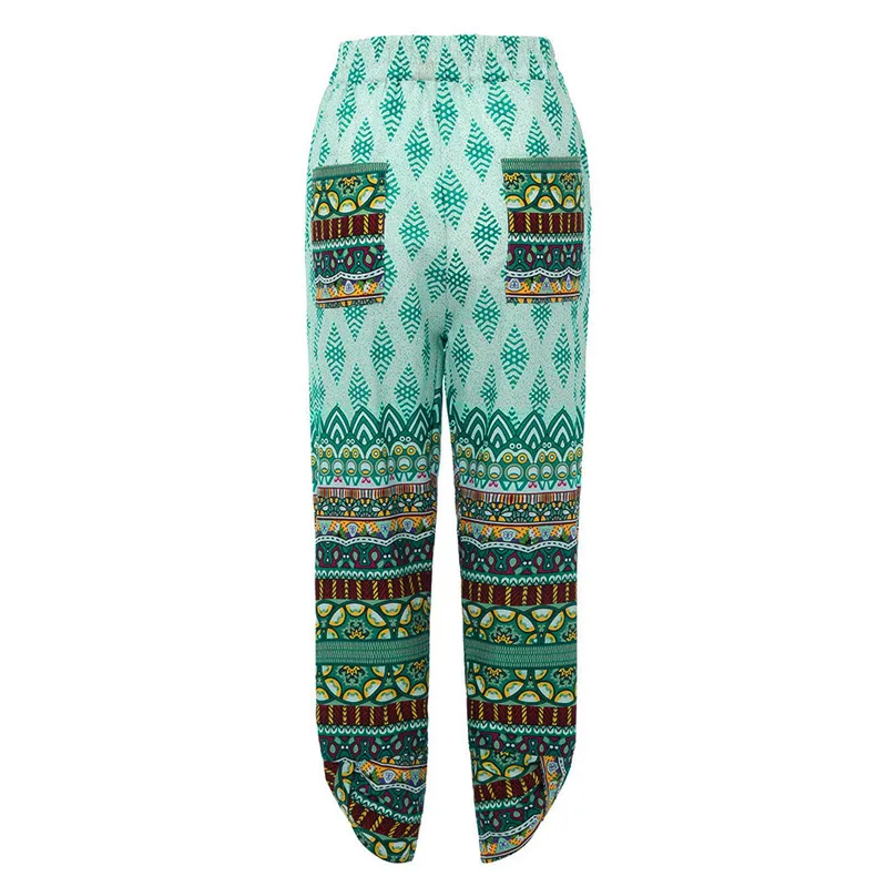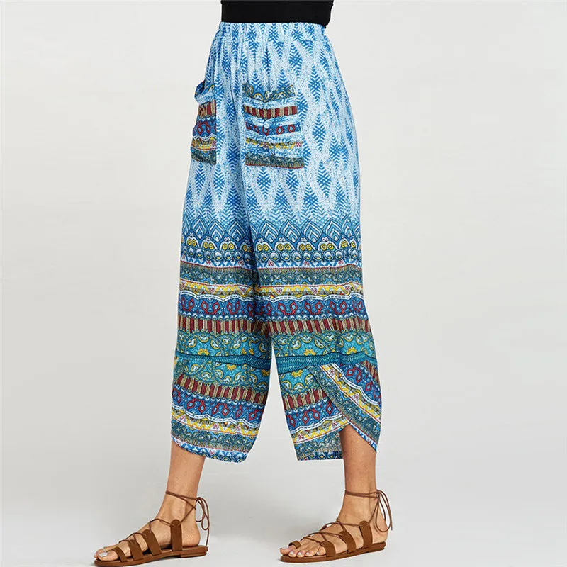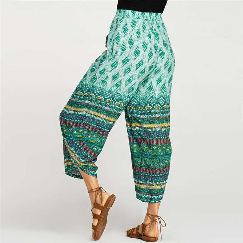 Богемные женские широкие брюки с высокой талией и принтом, свободные брюки с эластичной резинкой на талии, брюки длиной до щиколотки, M-5XL