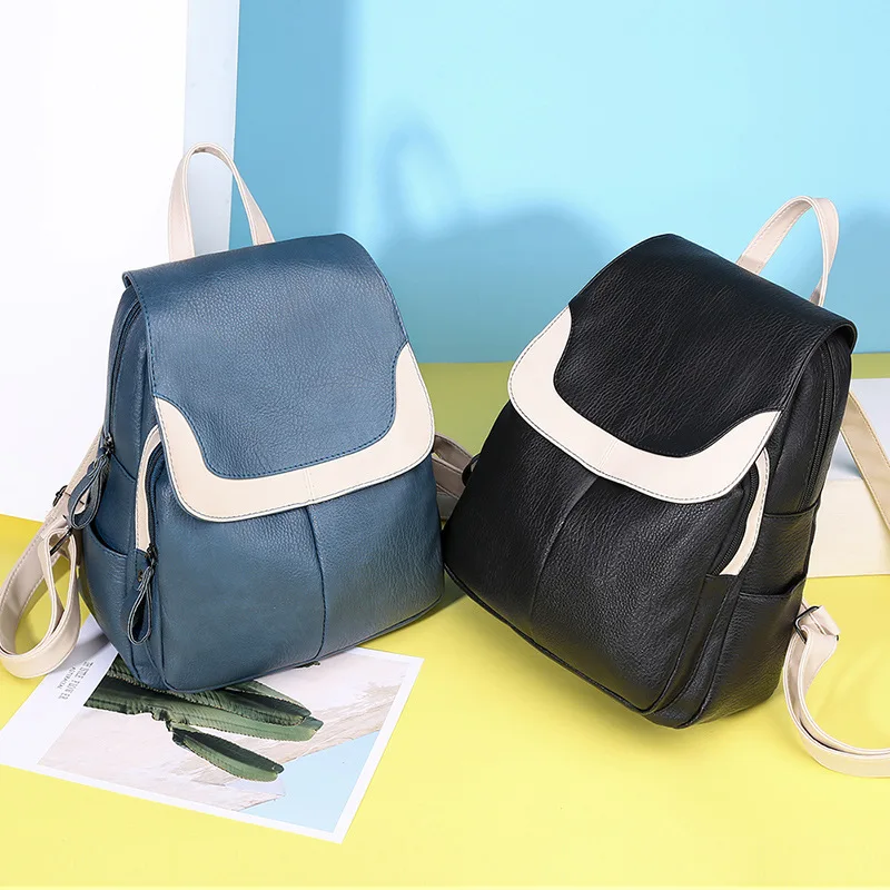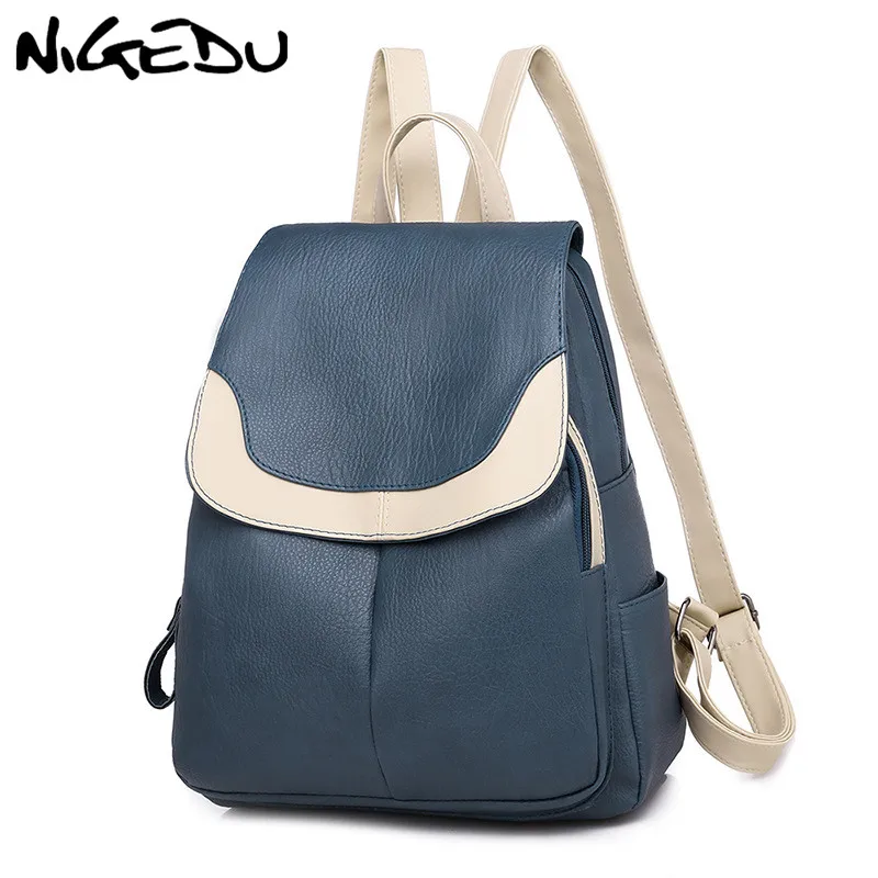 Женский рюкзак NIGEDU, черный рюкзак из мягкой искусственной кожи, вместительный дорожный рюкзак