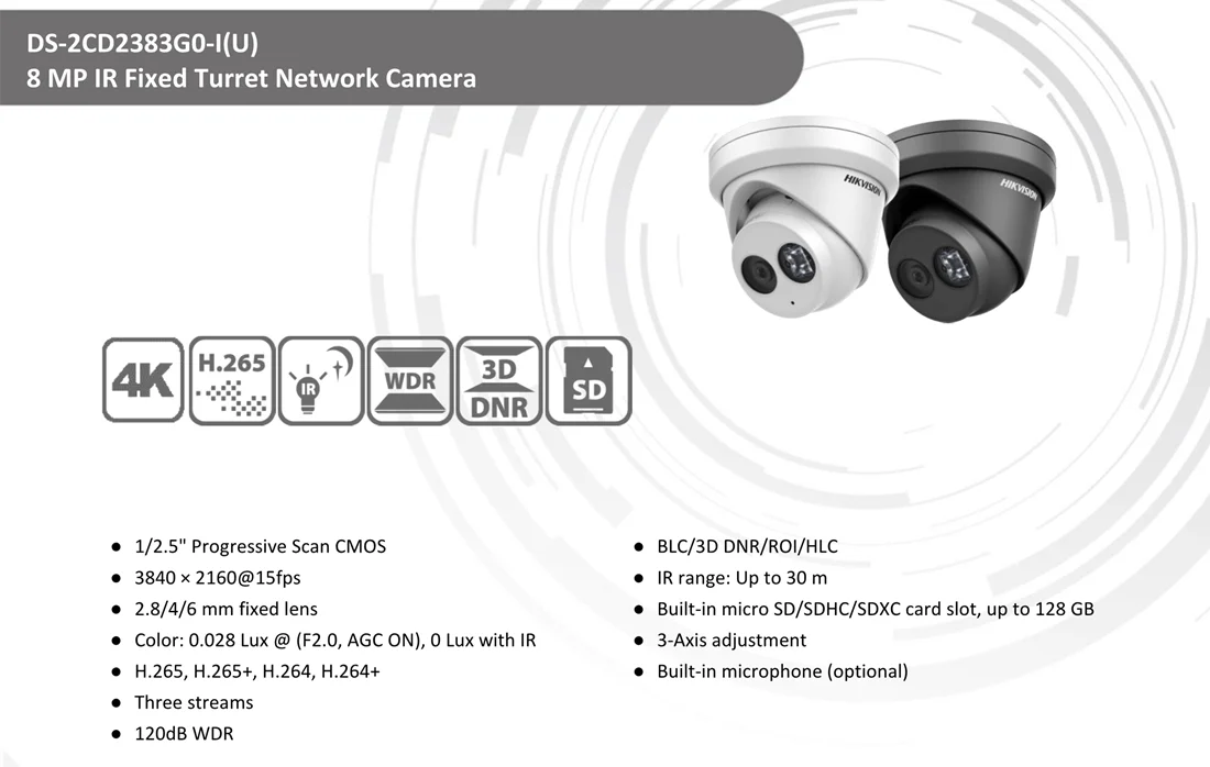 Бесплатная доставка, английская версия, DS-2CD2383G0-IU, замена, DS-2CD2385FWD-I, 8 Мп, IR, фиксированная турель, сетевая камера, встроенный слот micro SD