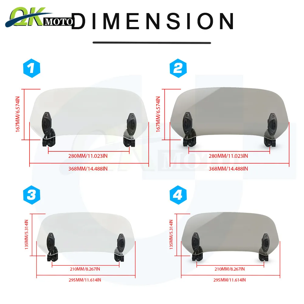 -Регулируемый, для ветрового стекла, закрепленный выше оригинального лобового стекла подходит практически для любого мотоцикла с ветровым стеклом.
