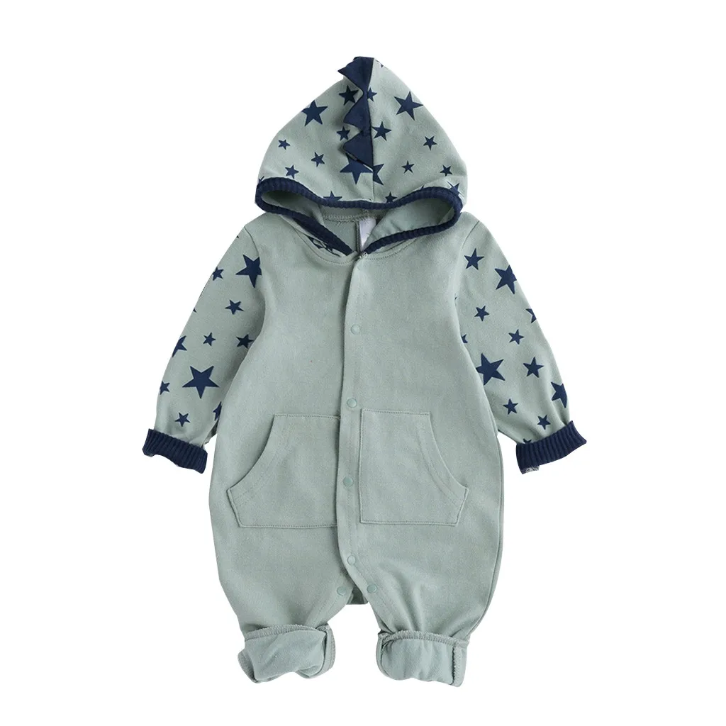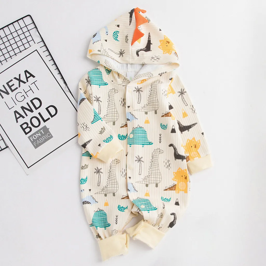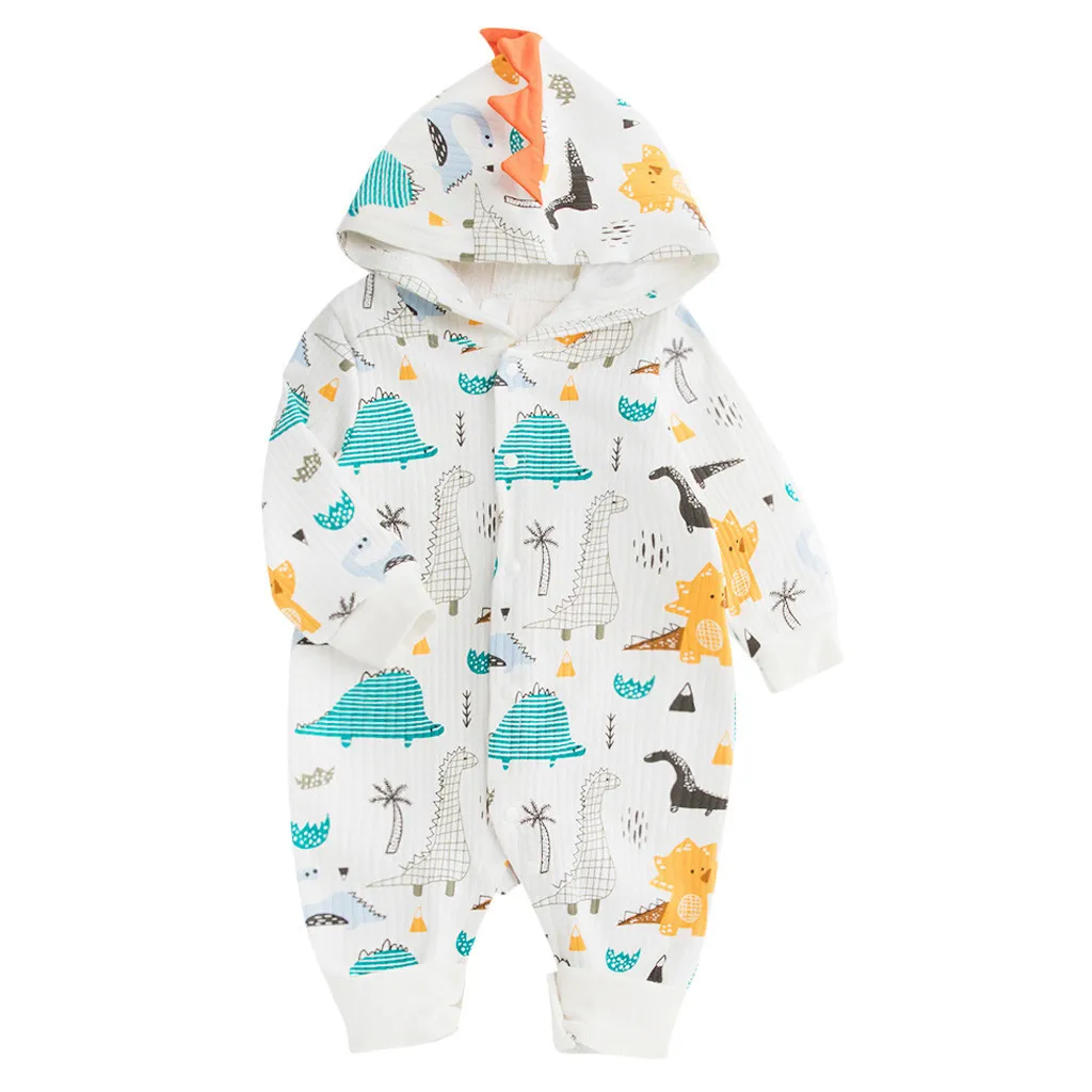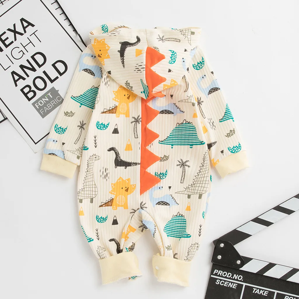 Комбинезон с длинными рукавами и рисунком динозавра для маленьких девочек; Комбинезон; Пижама