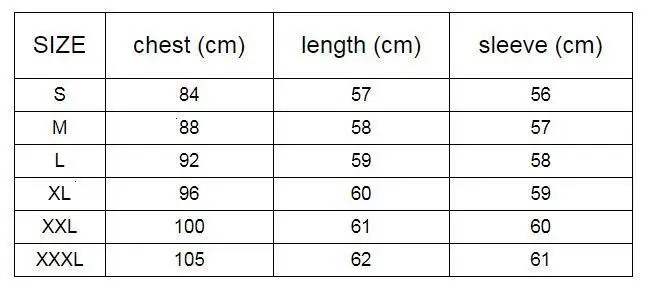 Длина 58 см, длина 88 см, длинные рукава 57 см (L) длина 59 см, обхват груди 92 см, длина рукава 58 см XL длиной 60 см половина 96 см Рукав 59 см в длину X x L длина 61 см, длина 100 см, длина 60 см Указанные выше Размеры-сантиметры. 1 см = 0,3937 дюйма один дюйм = 25400005 см Различные погрешности в измерениях (1-2 см)
