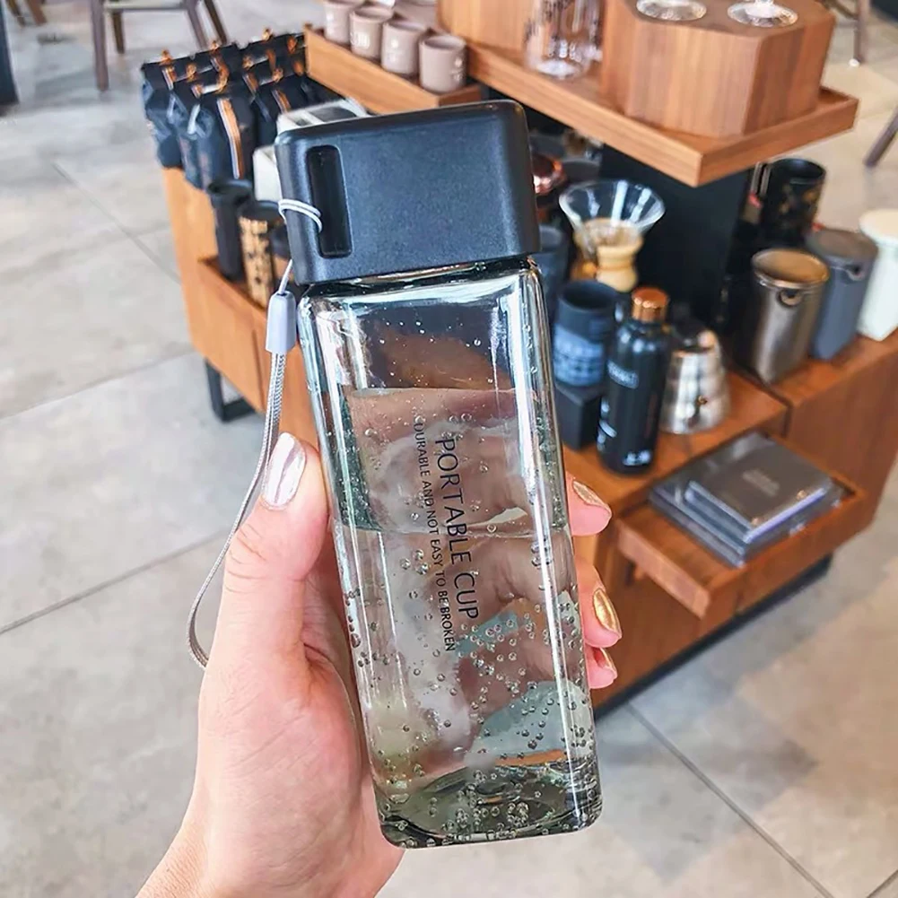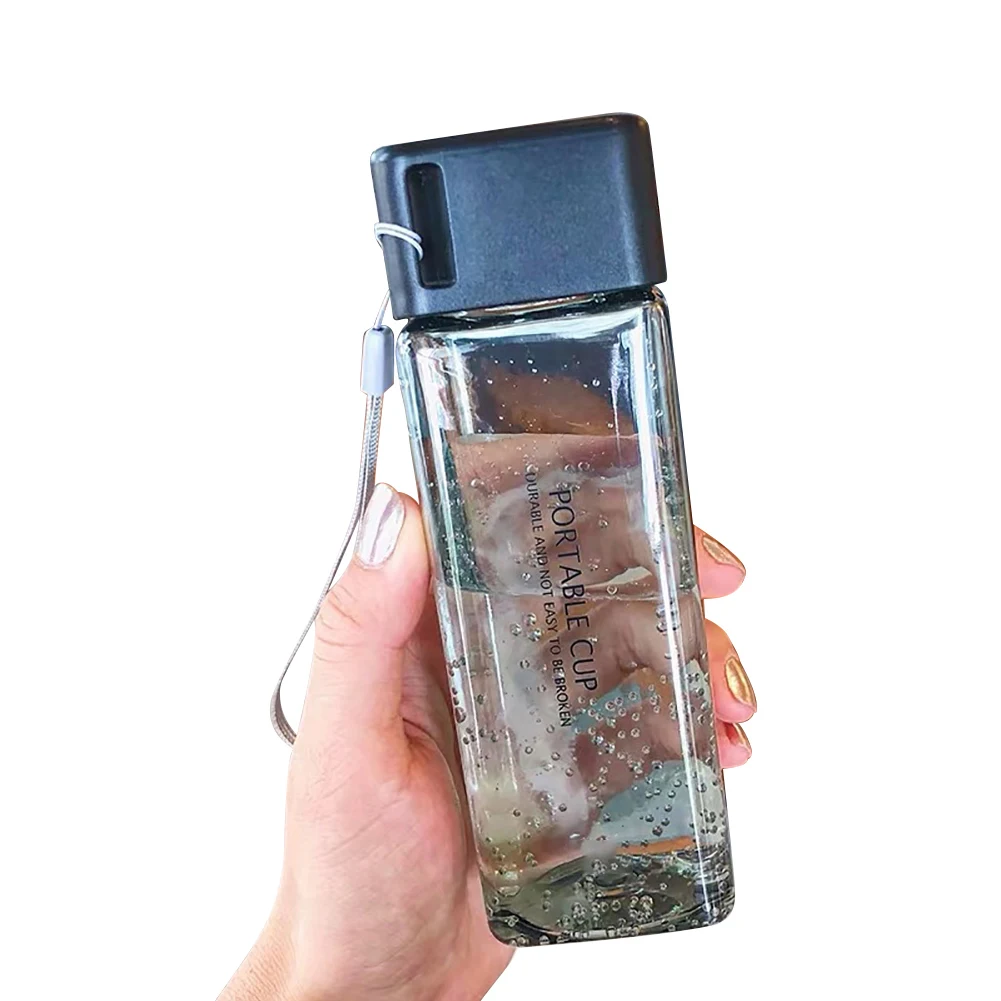Бутылки для воды 300 мл для путешествий на открытом воздухе, прозрачная пластиковая квадратная герметичная бутылочка для питья, стакан для питья