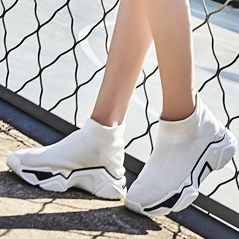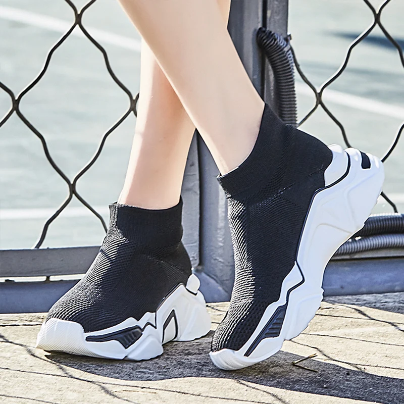 Женские кроссовки из мягкой сетчатой ткани, женские вязаные дышащие носки, кроссовки для бега, женская обувь на плоской подошве