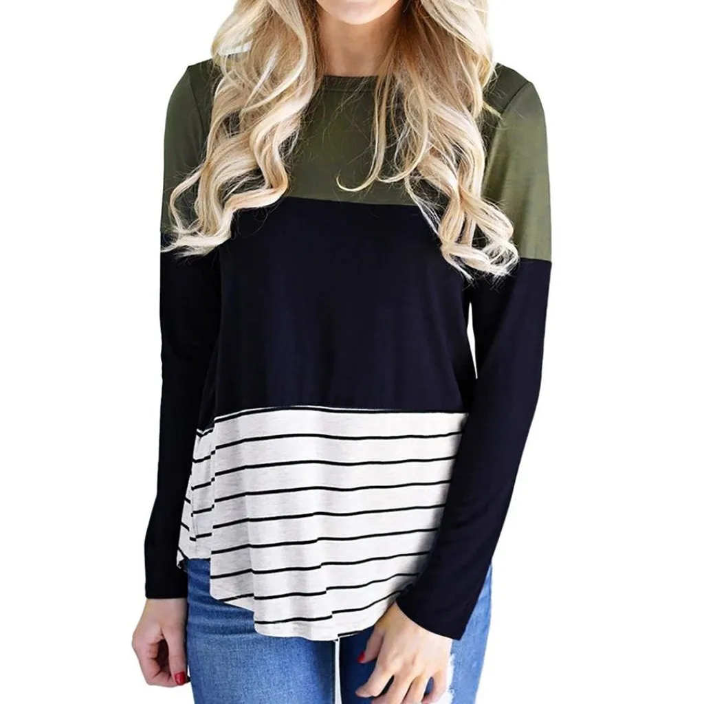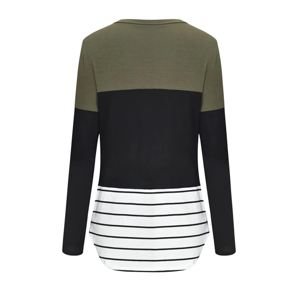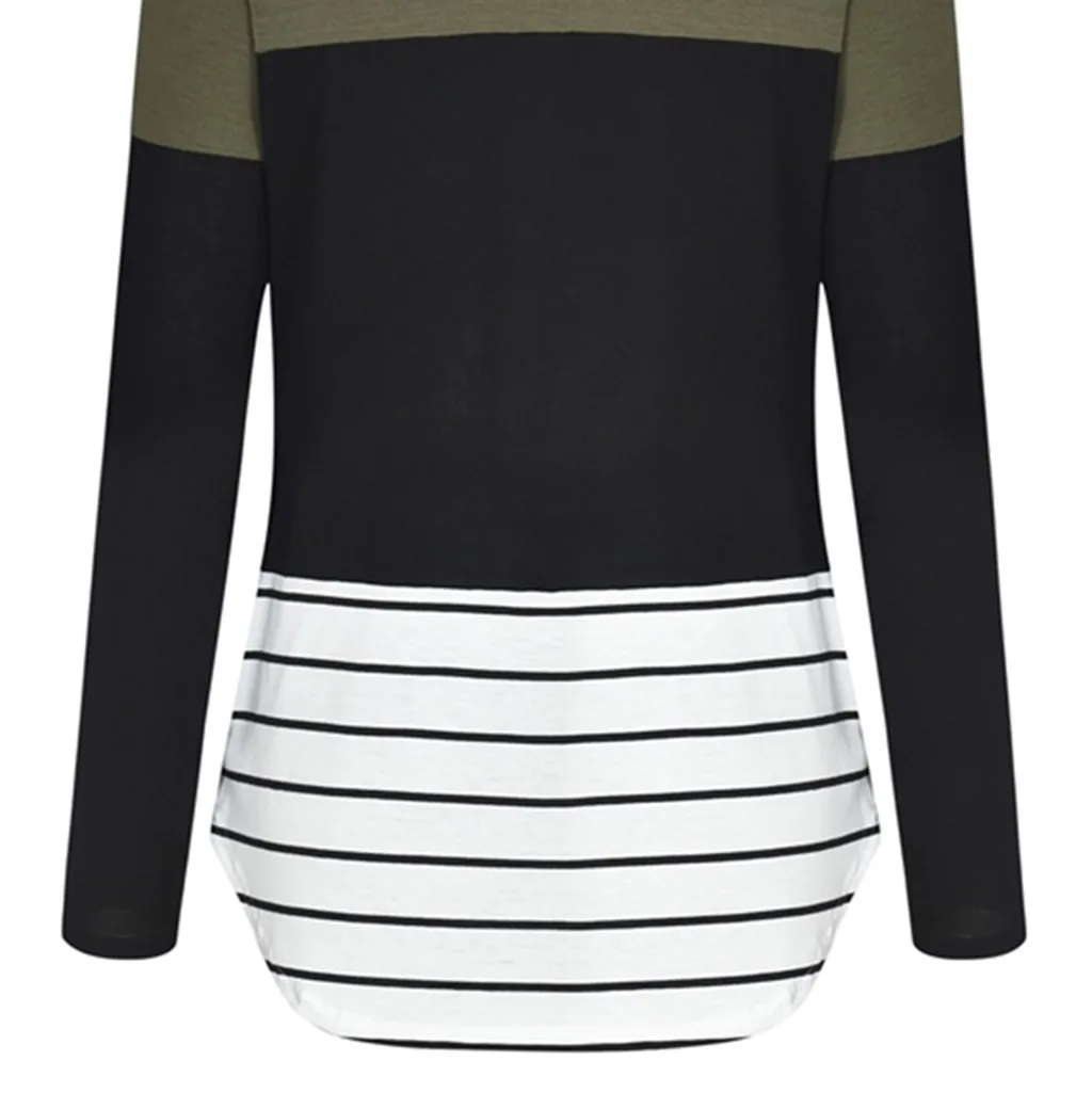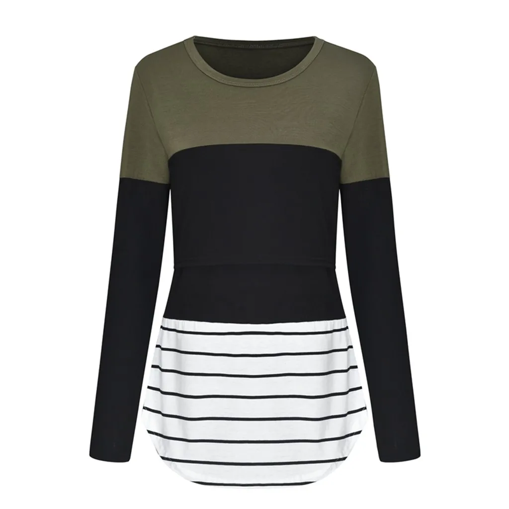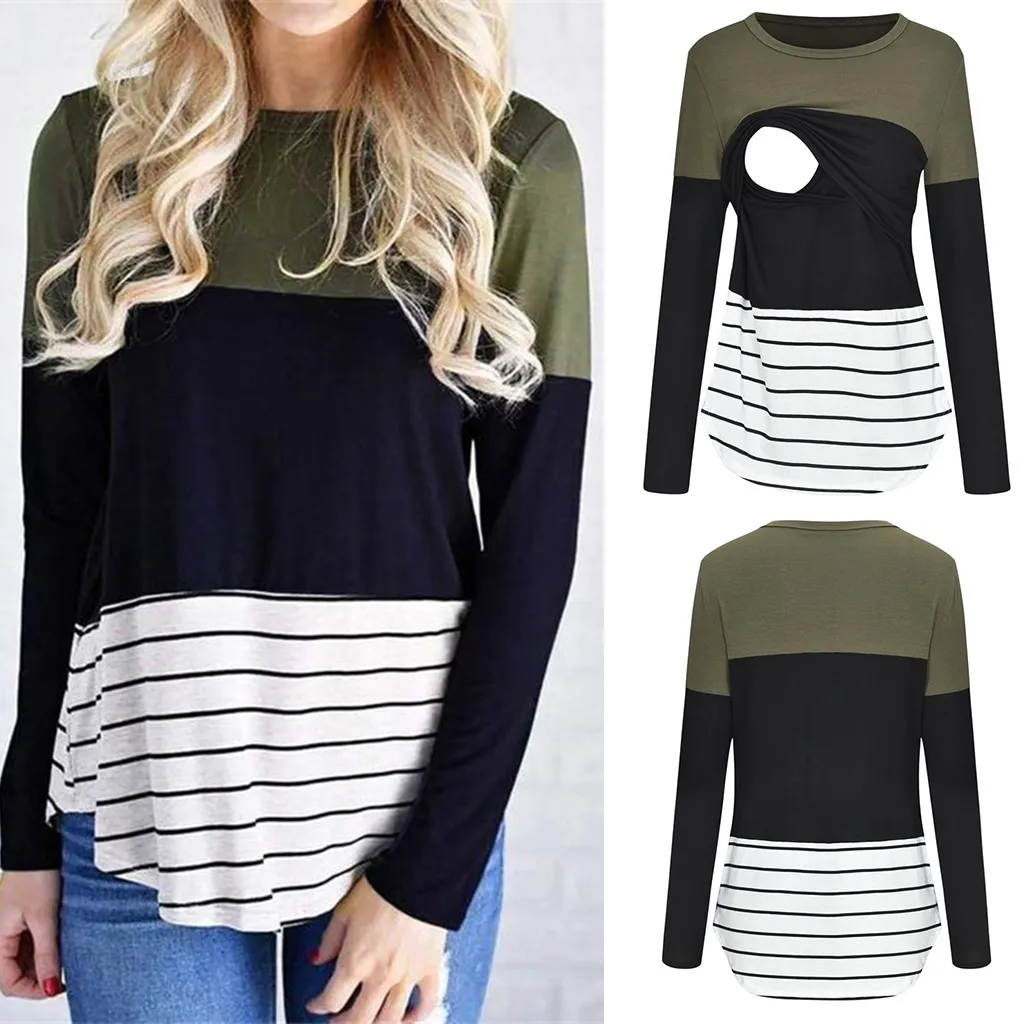 Women Maternity Long Sleeve Striped Nursing Tops T-shirt For Breastfeeding