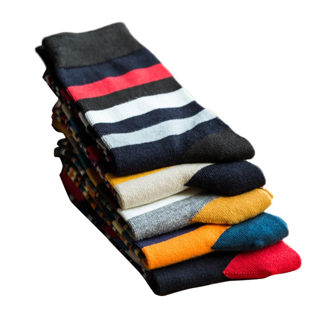 Мужские цветные осенние модные цветные полосатые носки, повседневные хлопковые носкиEU39-43 EU41-46