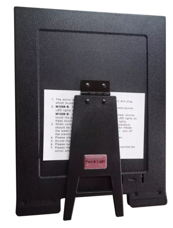 Инструкции по уходу за изделием 1. Зеркало подходит для перезаряжаемой батареи и вилки, которая находится под 5 В, 4,5 Вт и 1A. 2. M1006-B: при подключении аккумулятора или источника питания светодиодный индикатор включен. M1008-B: после подключения аккумулятора или источника питания, Коснитесь переключателя на правый угол, чтобы включить светодиодный индикатор. Держите прикосновение к выключателю, чтобы отрегулировать светодиодный свет. 3. При использовании и хранении зеркала температура должна быть между 0-45 ℃, и должна быть вдали от воды и влаги. Если вода в зеркале, немедленно выключите электричество. 4. Пожалуйста, поместите зеркало вдали от детей. 5. Не натыкайте, не бросайте и не снимайте зеркало. 6. Пожалуйста, выключите зеркало после использования. 7. Пожалуйста, убедитесь, что отключите источник питания от зеркала, когда вы храните его.