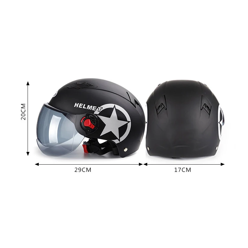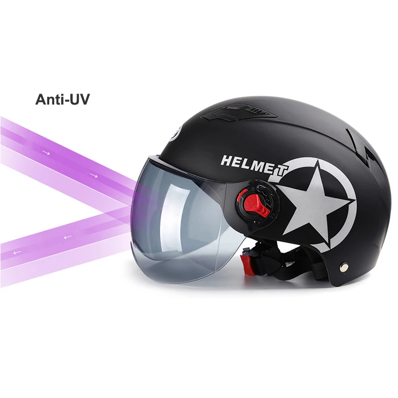 Особенности: Цифр размеров: Этот шлем имеет только один размер и может быть изменен внутри. Приблизительный размер 56-60 см. Материал: ABS + EPS Пол: унисекс для взрослых Цвет: красный, розовый, белый, ярко-черный, матовый черный Стиль: мотоцикл, электрический автомобиль Тип: защитный колпачок Описание: 1. Защита от ветра, защита от солнца, защита от УФ, защита головы, поэтому вы чувствуете себя свежим и прохладным, езда в шлеме, чтобы безопасно путешествовать. 2. Высококачественный легкий корпус из АБС-пластика. 3. Буферный слой высокой плотности и подвижный солнцезащитный козырек. 4. Регулируемое d-образное кольцо и ремешок для подбородка надежно крепят шлем к голове. 5. Подходит для вертолетов, крейсеров, скутеров и т. д.