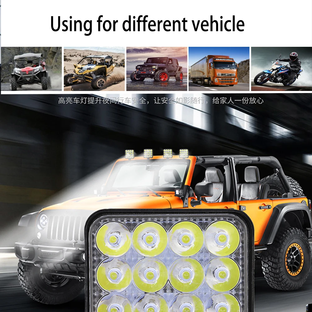 Широкое применение: он может применяться для различных типов внедорожников, 4WD, джипов, грузовиков, пикапов, тракторов, лодок, автобусов, спортивных утилит, UTE, ATV. Кроме того, он также может использоваться в сельском хозяйстве, горнодобывающей промышленности, промышленности, коммерции и других областях с низким энергопотреблением. -1 или 2 шт. * 48 Вт светодиодный рабочий светильник-Монтажный комплект