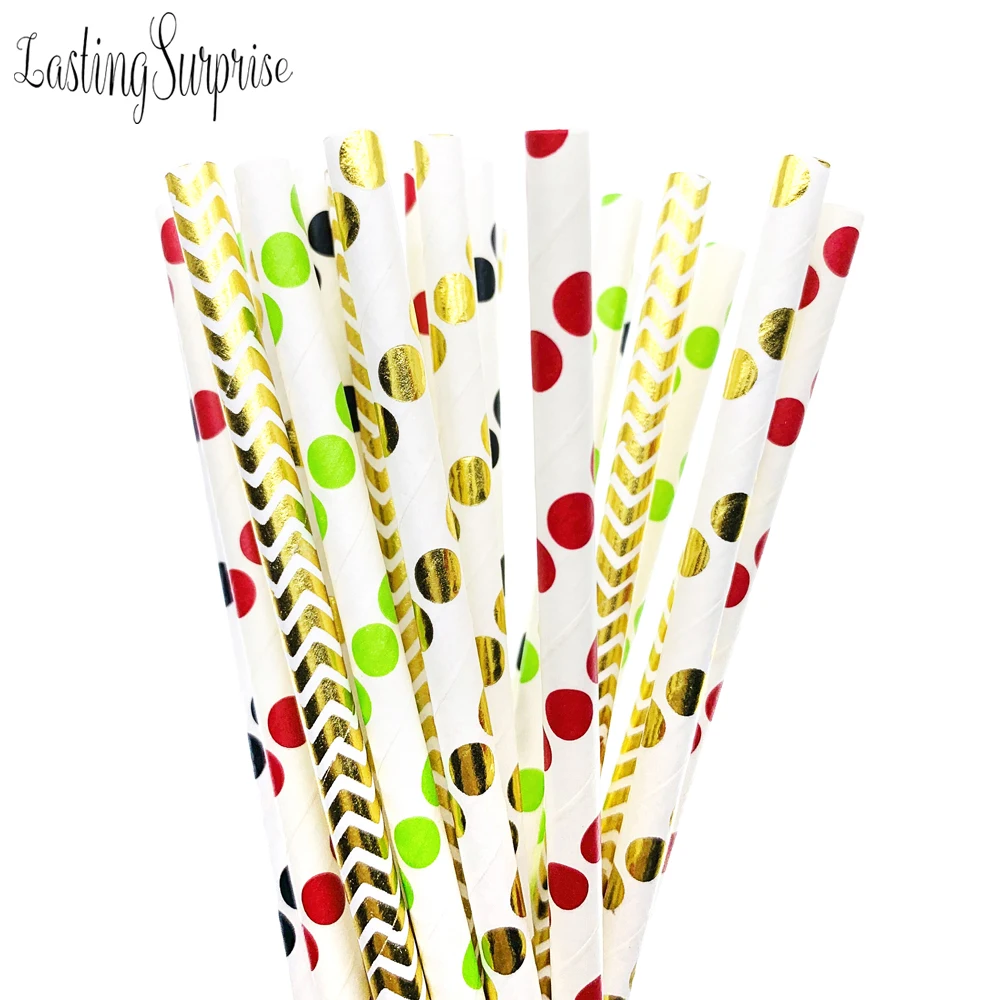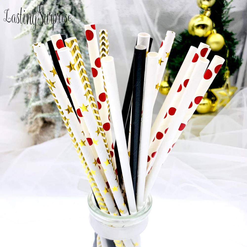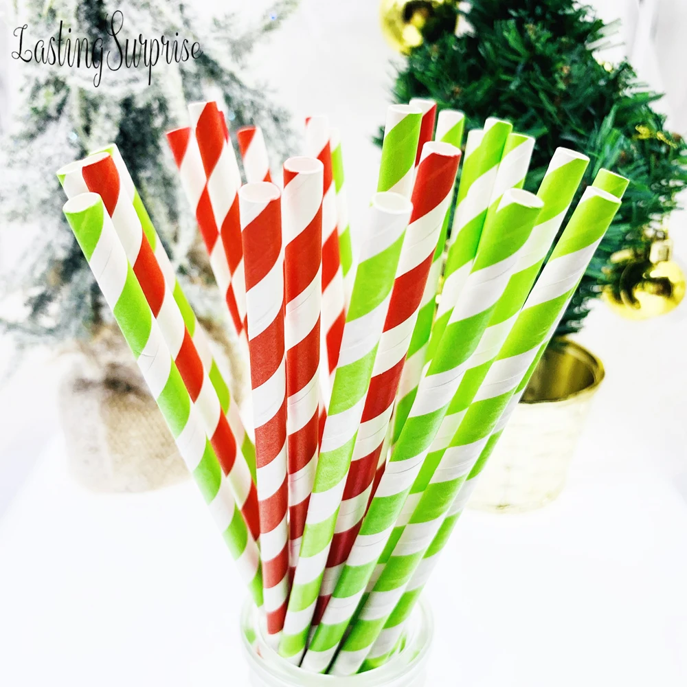 Рождественская одноразовая бумажная соломинка для питья в полоску, соломенная детская Свадебная декорация для душа, рождественский подарок, вечерние товары для мероприятий