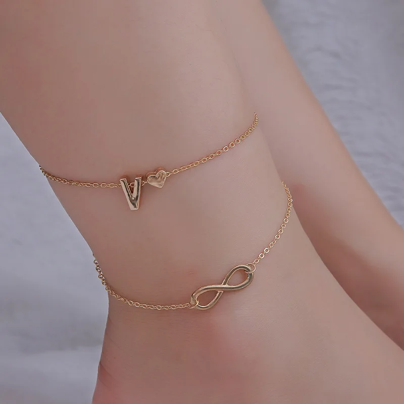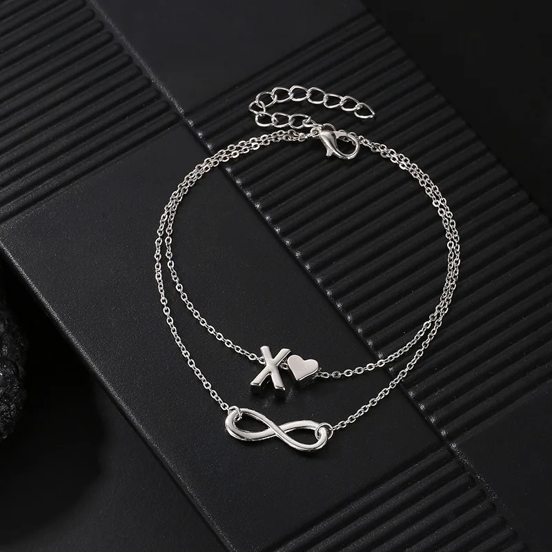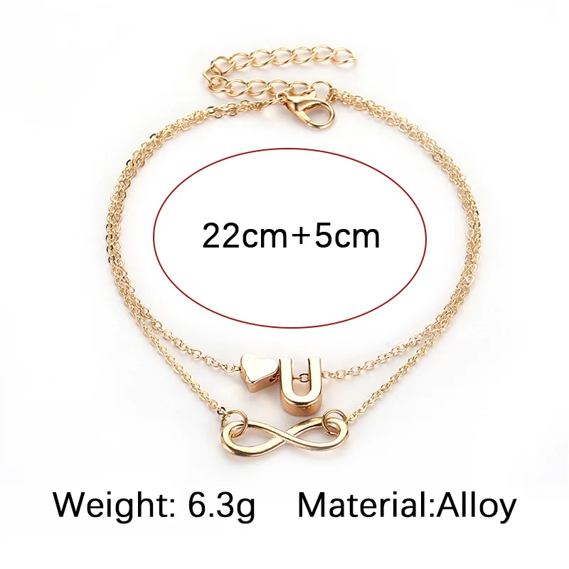26 букв Бесконечность любовь ножной браслет на заказ выберите БУКВЕННОЕ начальное имя любовь сердце двойной слой лодыжки браслет пара ювелирных изделий подарок любви