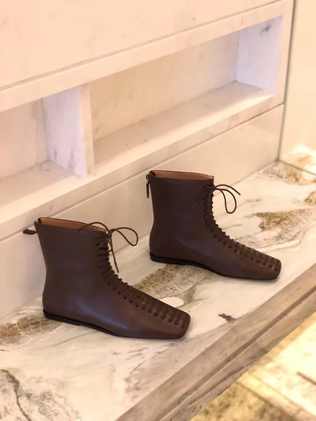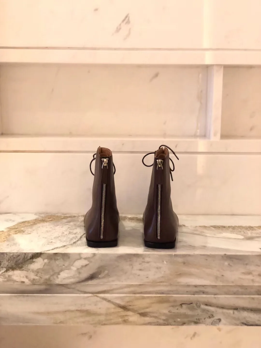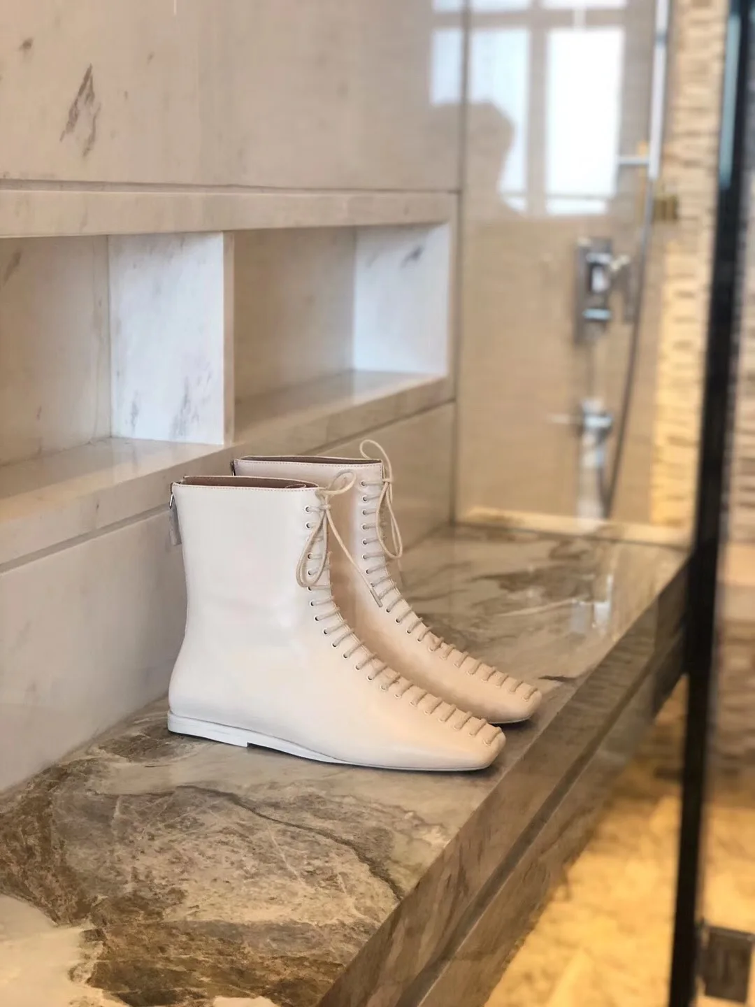 Женские ботильоны из овечьей кожи на плоской подошве со шнуровкой, 2019
