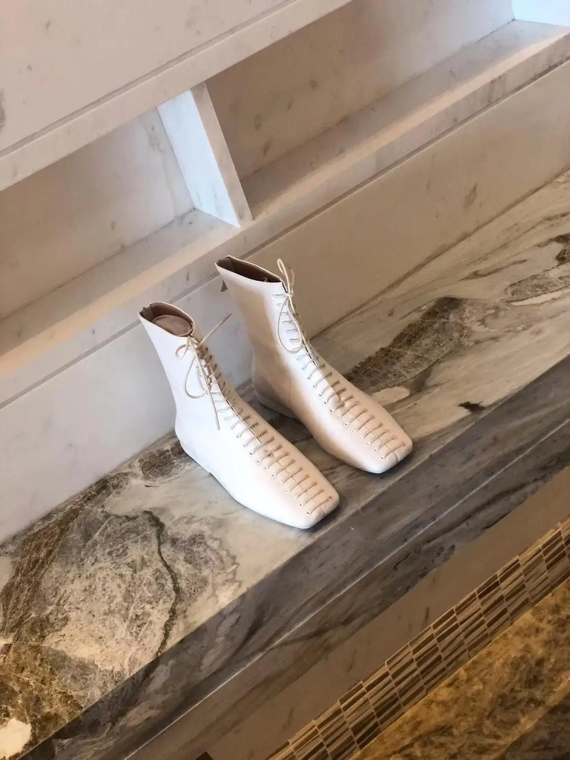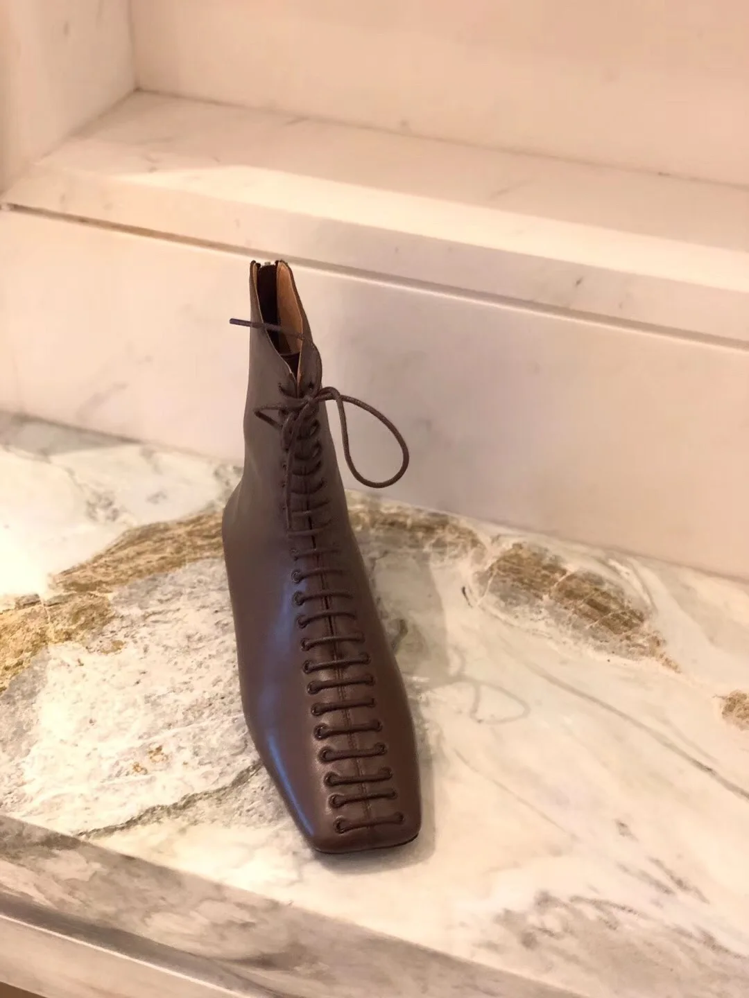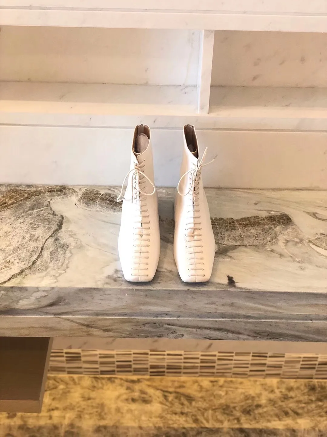Женские ботильоны из овечьей кожи на плоской подошве со шнуровкой, 2019