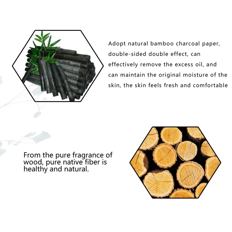 * Натуральный бамбуковый уголь, масляные ткани быстро впитывают излишки масел и помогают контролировать блеск без порошка. Каждое использование успокаивает, защищает и освежает лицо.