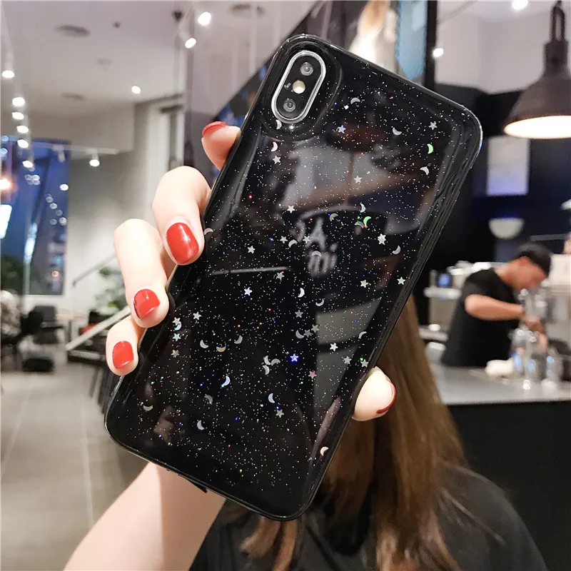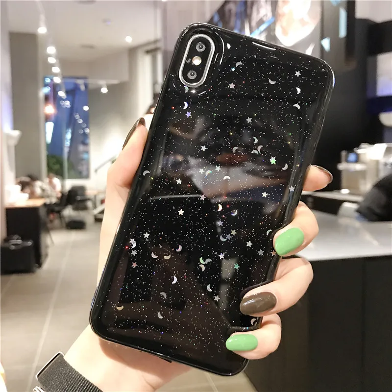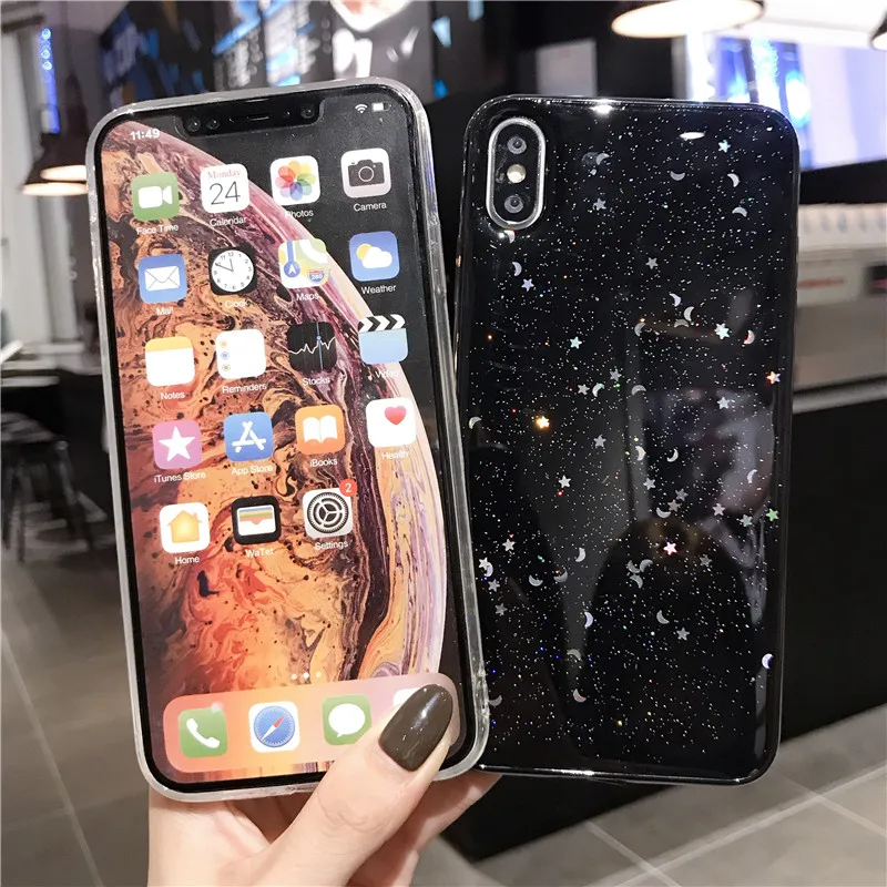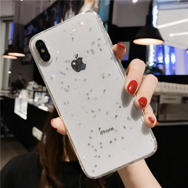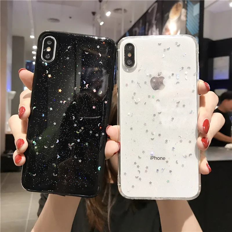 Блестящий мягкий прозрачный силиконовый чехол из ТПУ с блестящими звездами, Луной и блестками чехол для iPhone 6 6s 7 8 Plus 10 X XS XR 11 Pro максимальный чехол