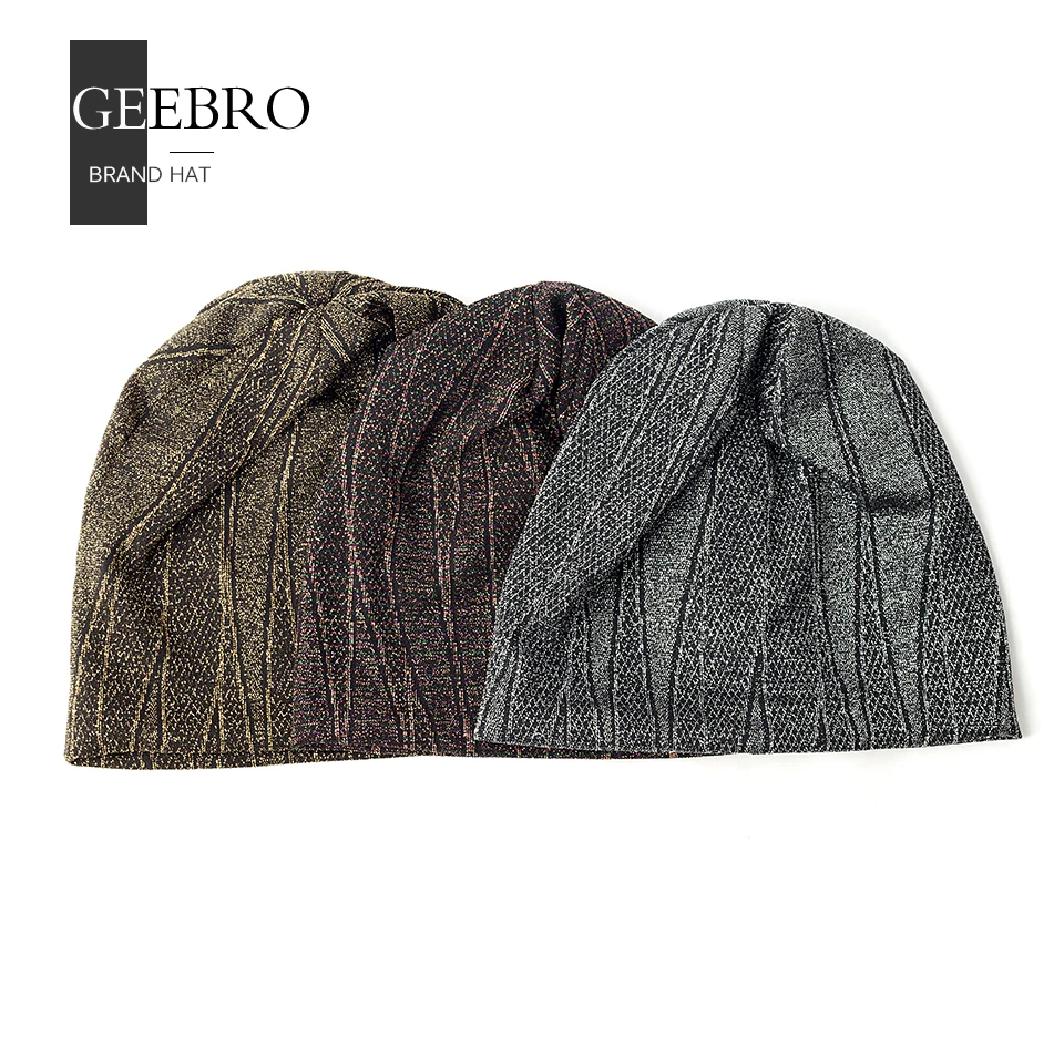 Geebro New Style Women Men Hip Hop Hat Warm Winter Autumn Shiny Striped Beanie Caps Soft Unisex Warm Skull Cap for Girls Boys