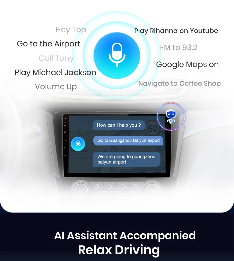 Просто скажите, что командное слово и «Toppal Voice» сделают вашу работу, например, откройте навигацию, откройте музыку, Воспроизведите видео .... Он содержит более 36 фиксированных команд для 8 стран, что делает ваш диск более легким и безопасным.