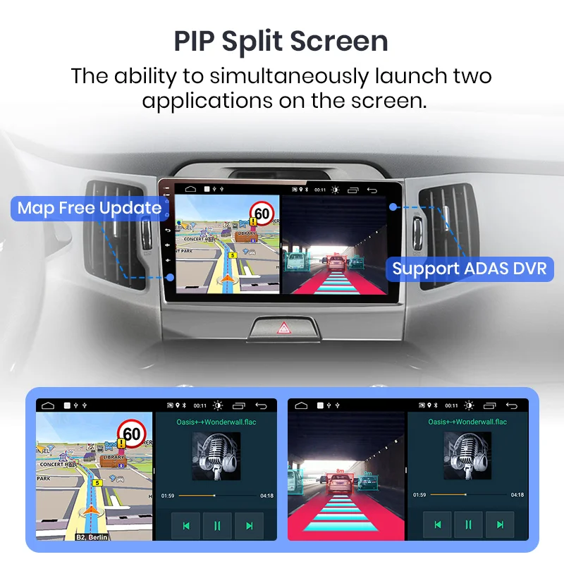 Вы можете использовать навигацию и другие приложения одновременно, такие как прослушивание музыки или включение функции ADAS.