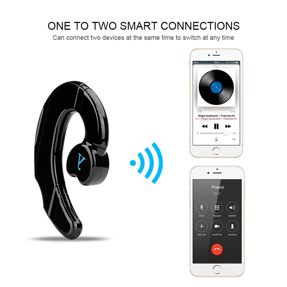 Дизайн без ушной вилки-не подключайте к уху, носите на задней части ушных раковин. Безболезненное ношение при длительном использовании, очень удобный светильник.Чистый вызов и высокое качество-использование технологии шумоподавления CVC6.0 + DSP для улучшения качества звука. Встроенный высокопроизводительный литиевый аккумулятор, 4-6 часов непрерывной работы, 8-10 часов непрерывной работы, 2 часа быстрой зарядки. И имеют встроенные ключи, голосовые подсказки, отображение электроэнергии и другие функции.