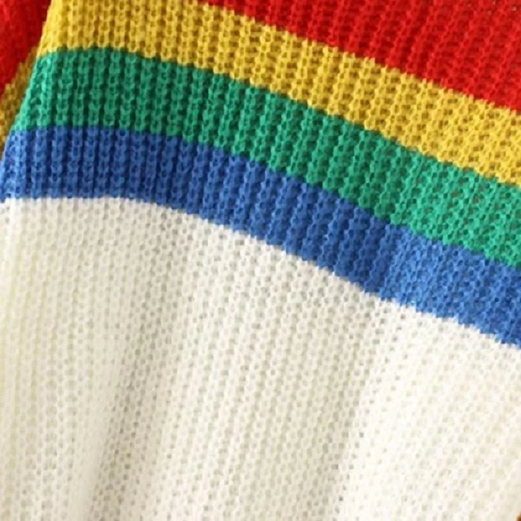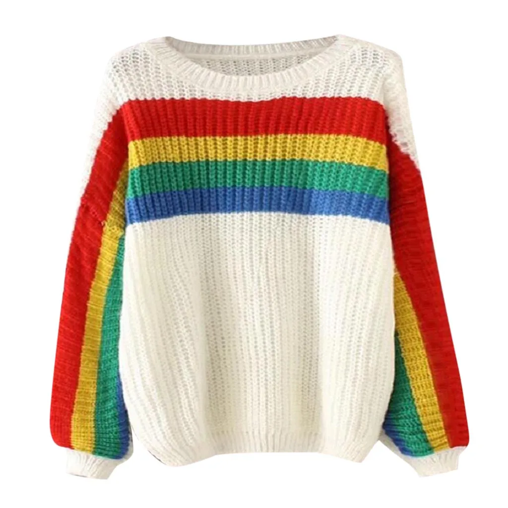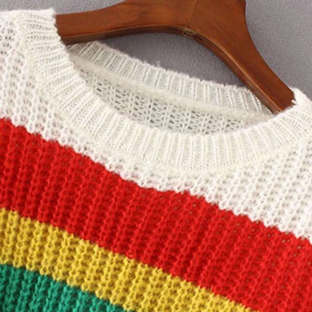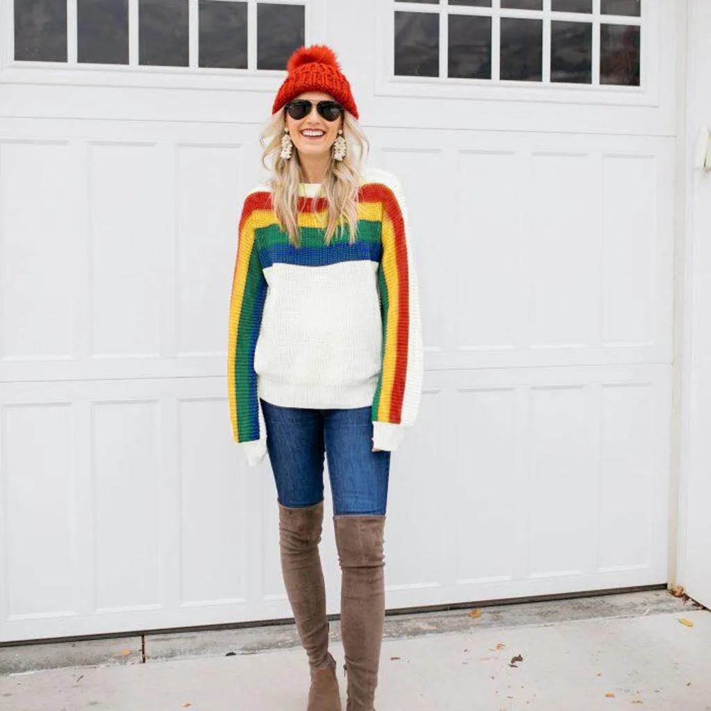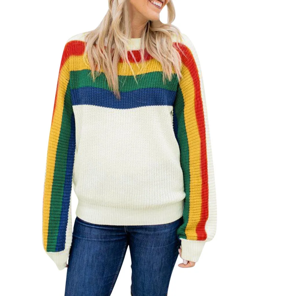 Осенне-зимние вязаные женские свитера с сердечками в полоску, радужные пуловеры, свитер с длинными рукавами, тонкий пуловер для женщин, джемперы, sueter mujer