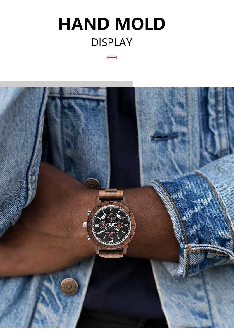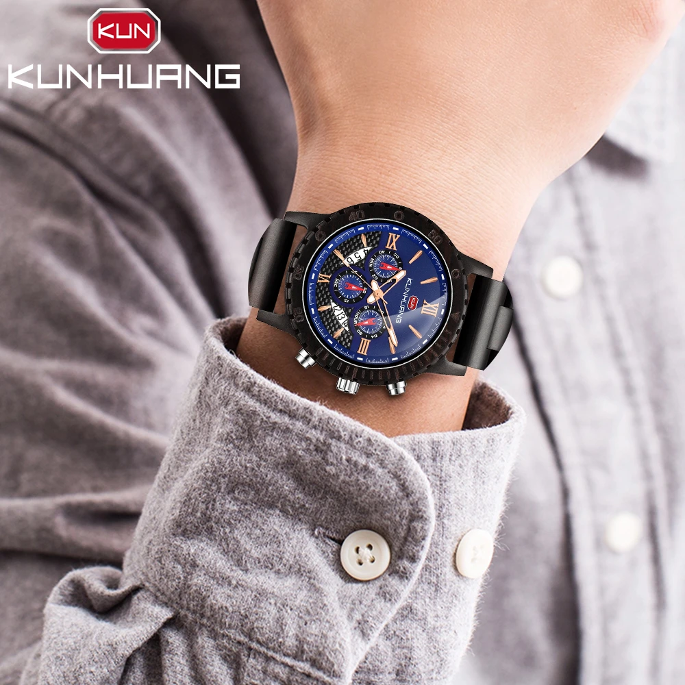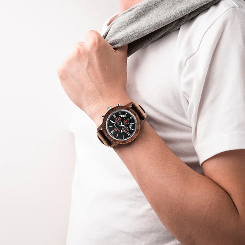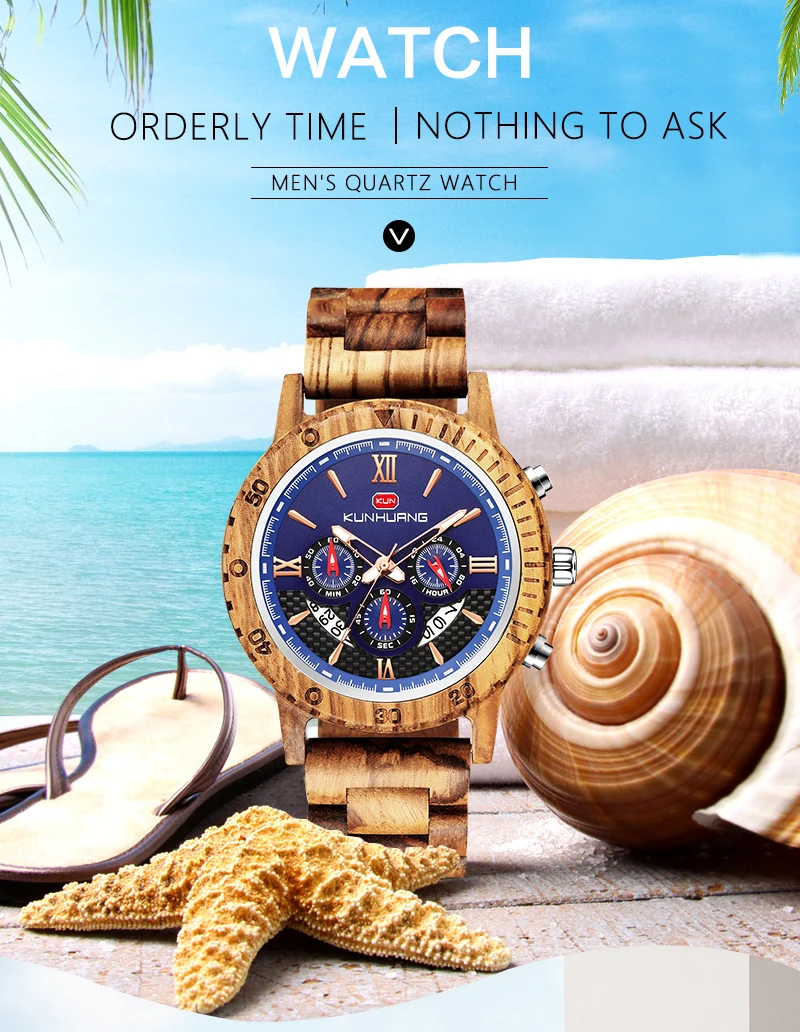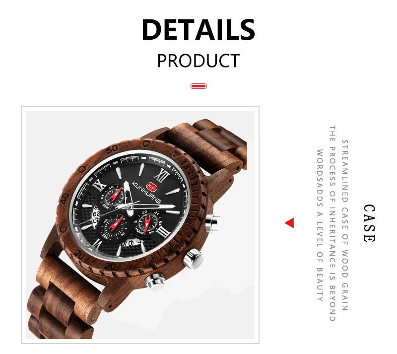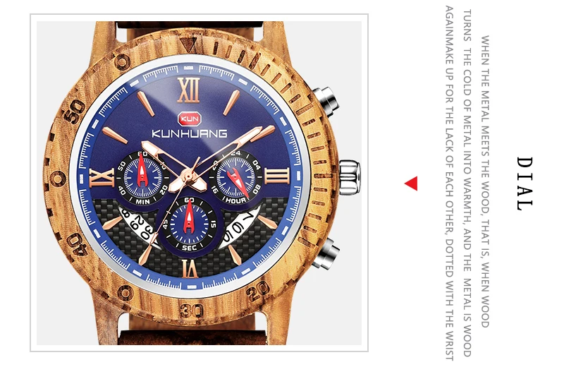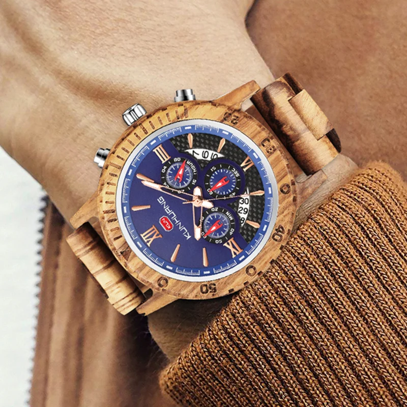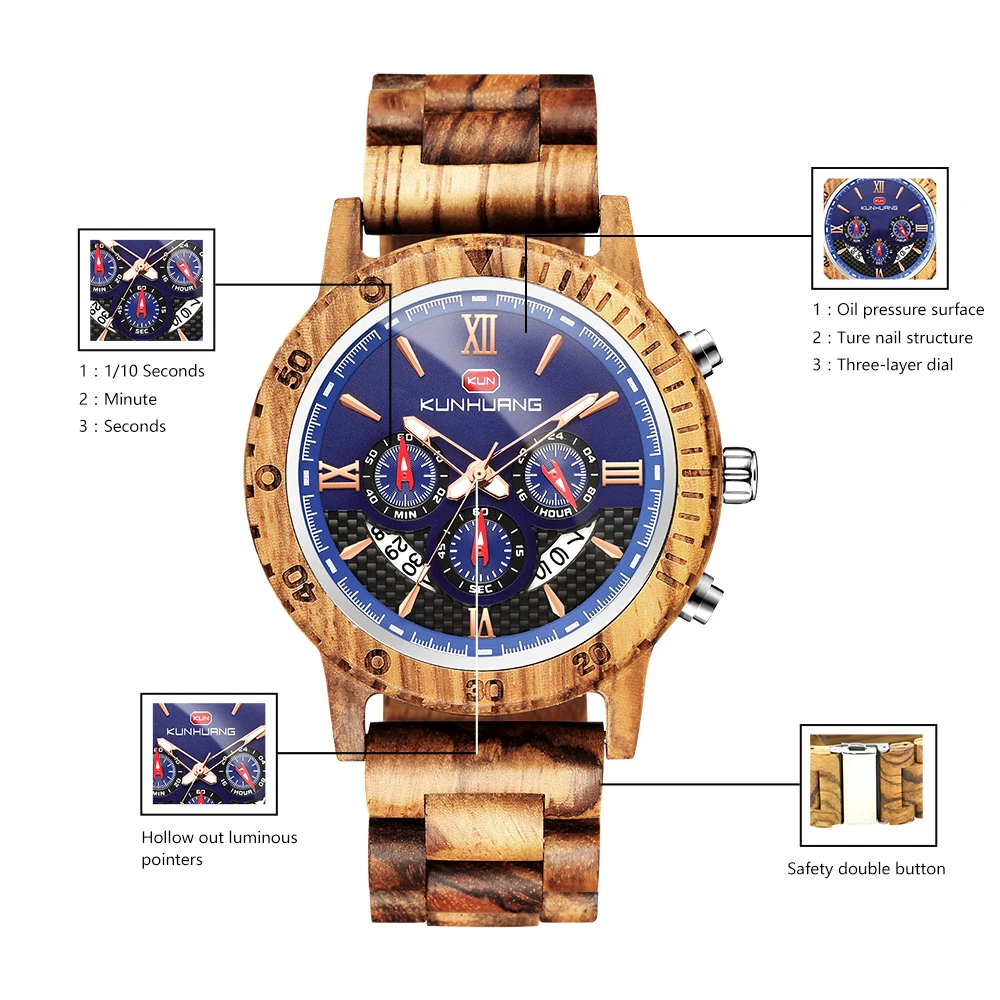 KUNHUANG хронограф деревянные часы для мужчин Relogio Masculino большой циферблат спортивные наручные часы черный черное дерево мужские часы Reloj Hombre