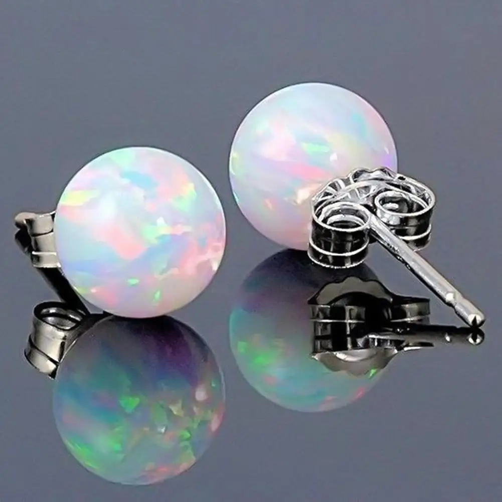 Модные женские Круглые Искусственные серьги-гвоздики с огненным опалом, ювелирные изделия для пирсинга, подарок