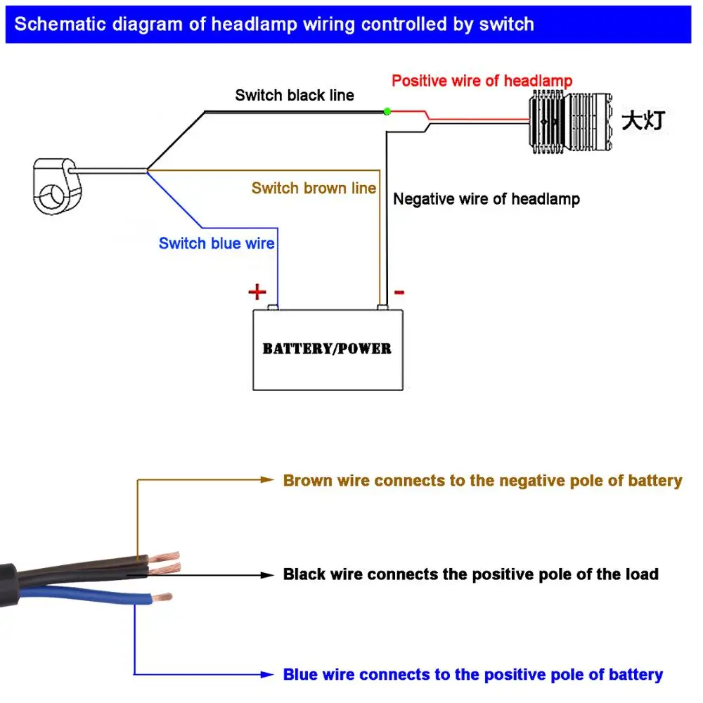 [Метод проводки]: синий провод подключен к положительной батарее; Коричневый провод подключен к отрицательной батарее; черный провод подключен к положительной входной линии нагрузочного электрического прибора.