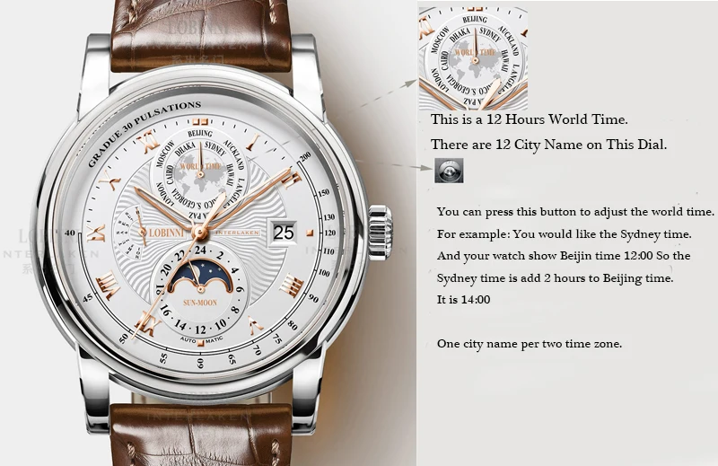 Вы можете нажать эту кнопку, чтобы настроить мировое время. Например: вы бы хотели время в Сиднее. И ваши часы показывают время Beijin 12:00, поэтому время Сиднея прибавляет 2 часа к пекинскому времени. Это 14:00 Одно название города в двух часовых поясах.