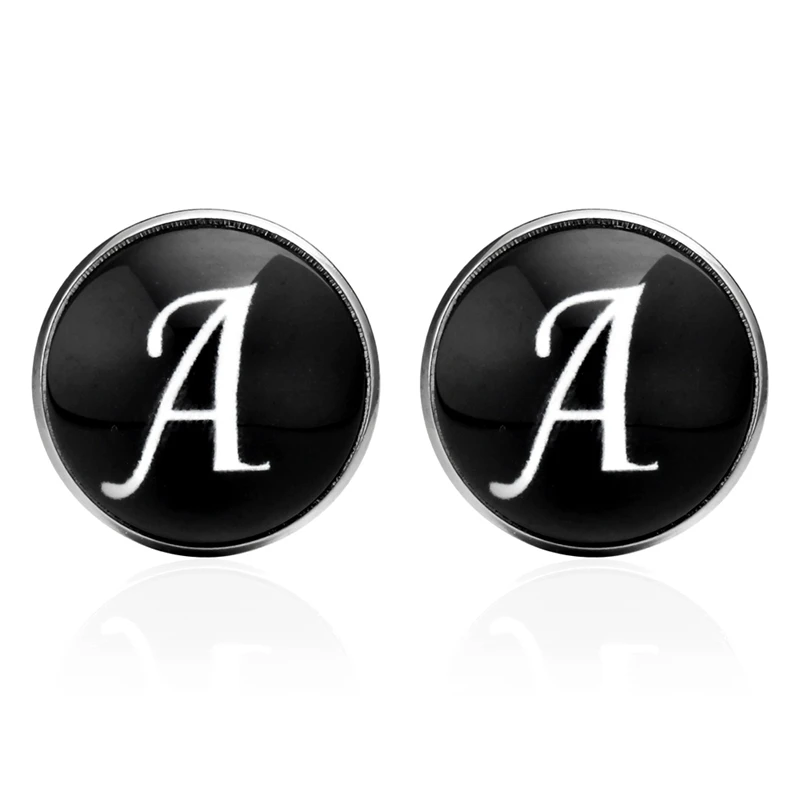 Название:Мужские костюмы с 26 буквами, запонки, запонки, черные, покрытые стеклом кабошон, французские запонки с буквами, свадебные запонки, аксессуары
