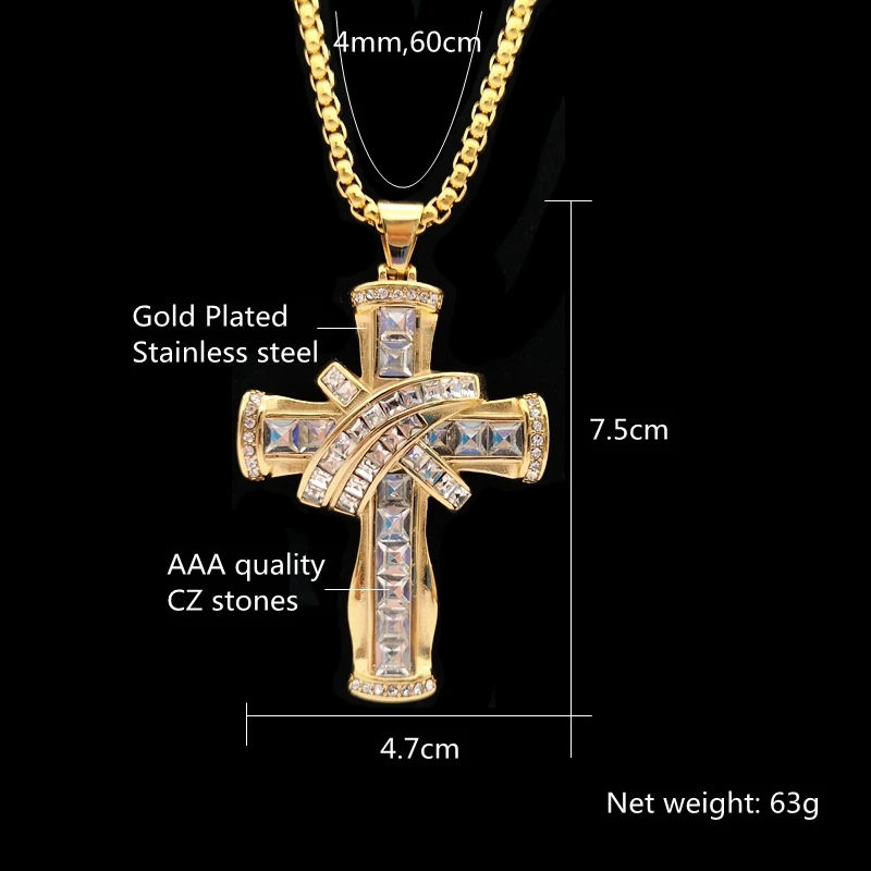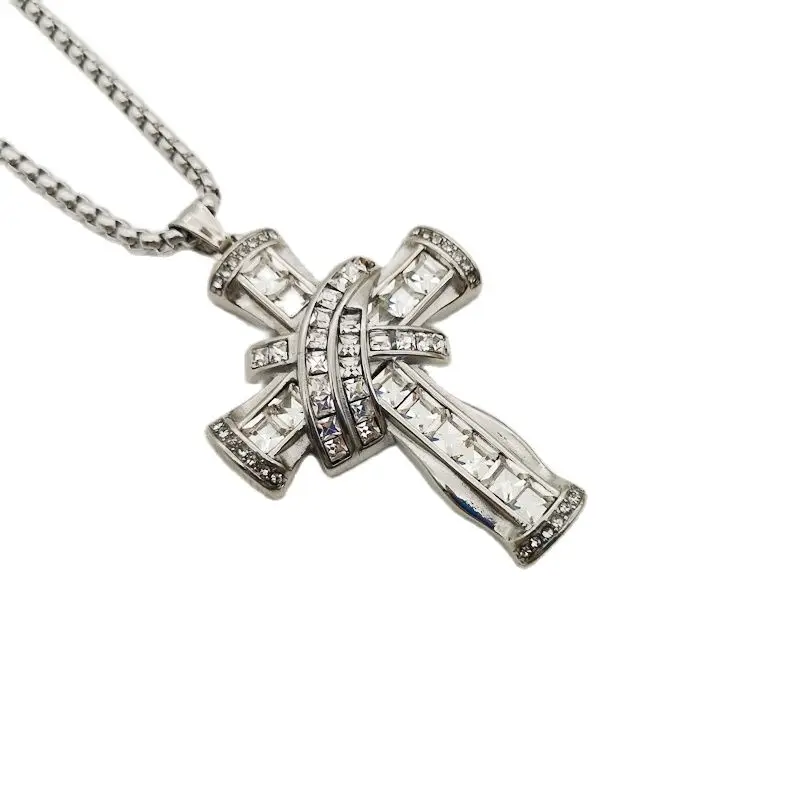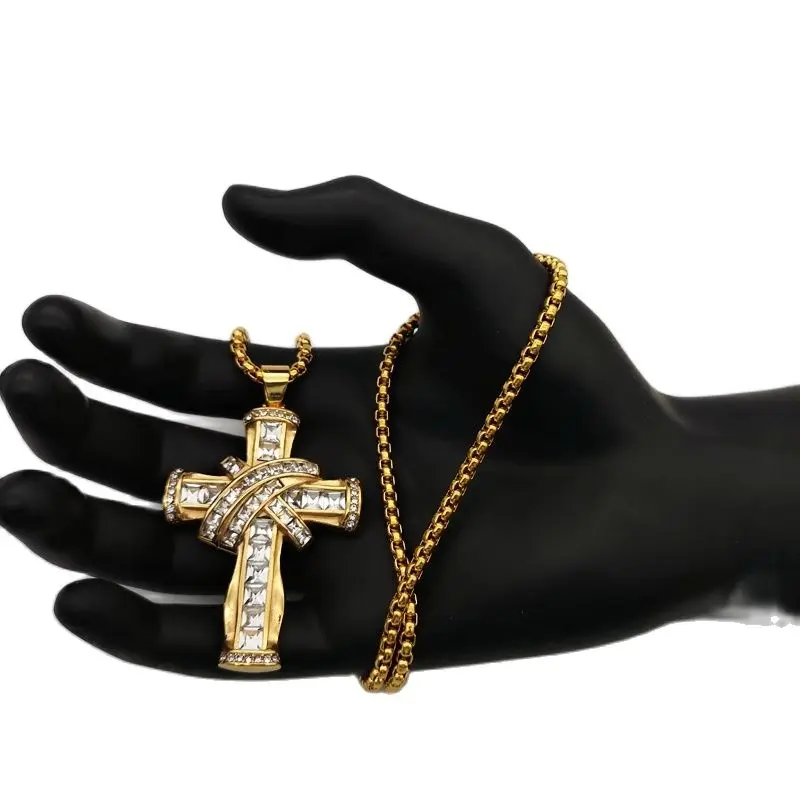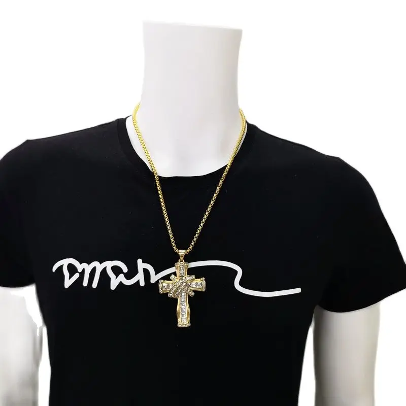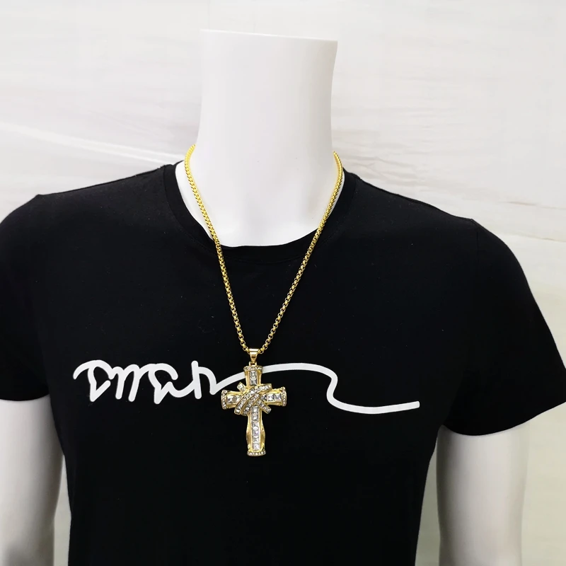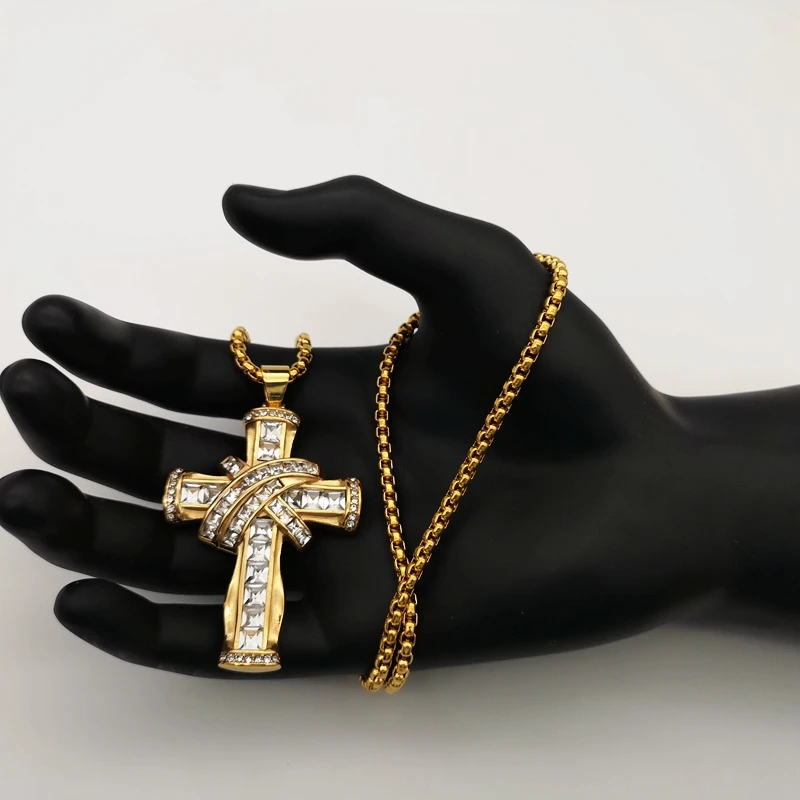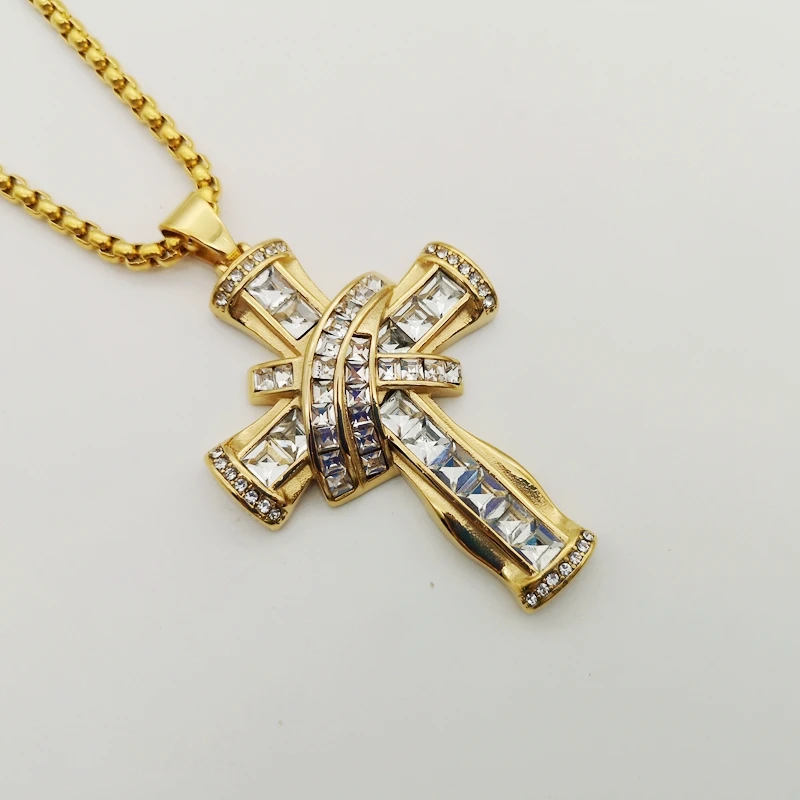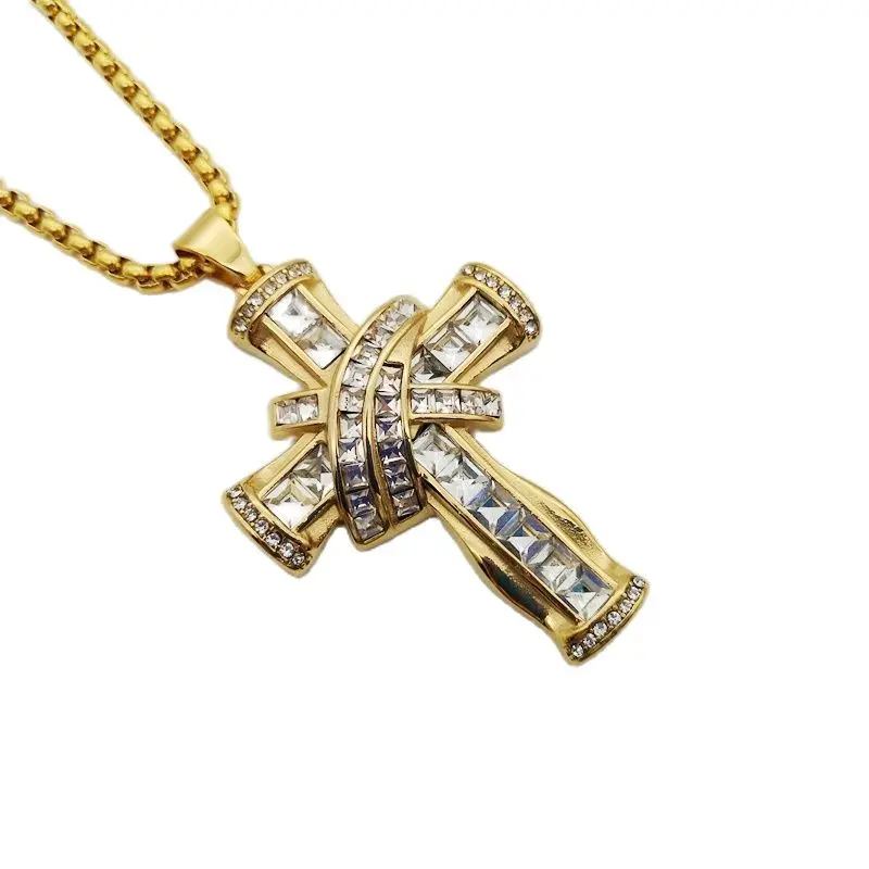 Роскошное крупное блестящее квадратное ожерелье с подвеской в виде креста, стразы золотистого/серебристого цвета, нержавеющая сталь, крест-накрест, для танцора, для выступлений, ожерелье в стиле хип-хоп, ювелирное изделие в стиле рок