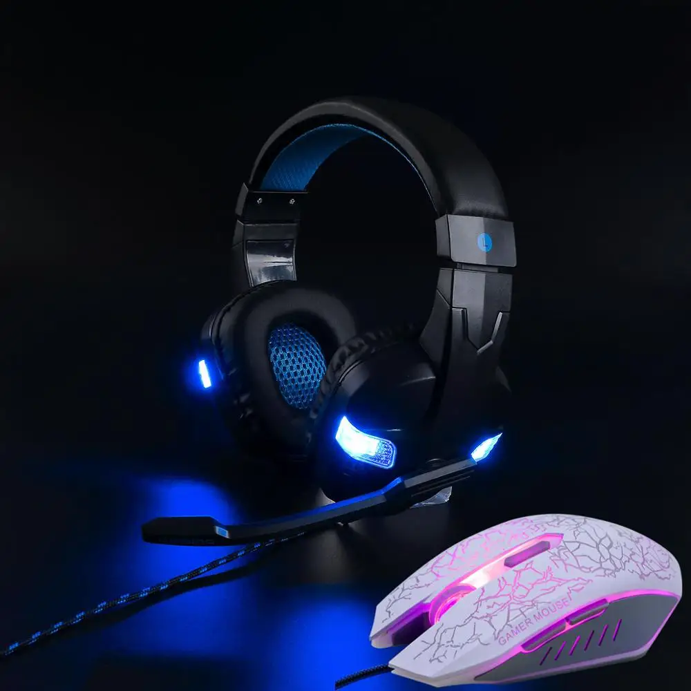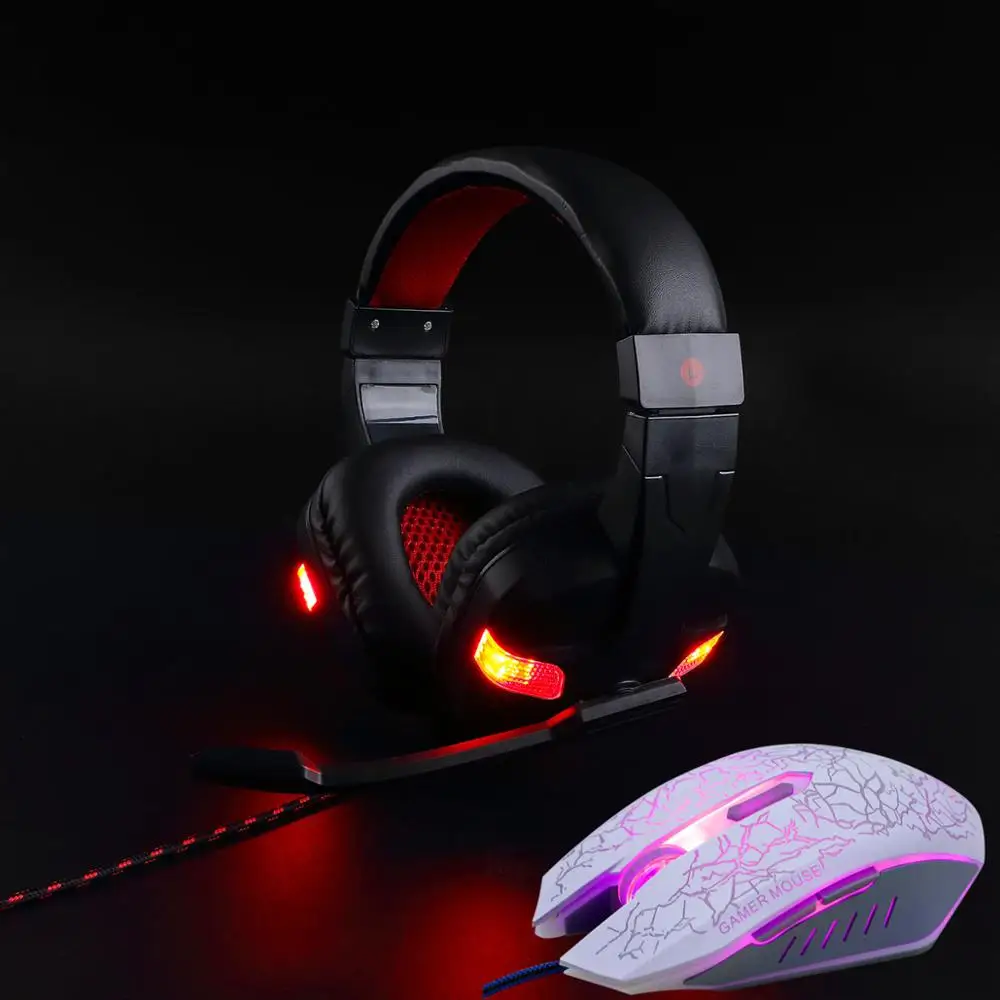 MO860 лучшая игровая гарнитура геймер шлем глубокий бас Игровые наушники для PS4 Xbox One компьютер ПК ноутбук с микрофоном светодиодный + Проводная игровая мышь USB с дыханием Красочный светодиодный светильник