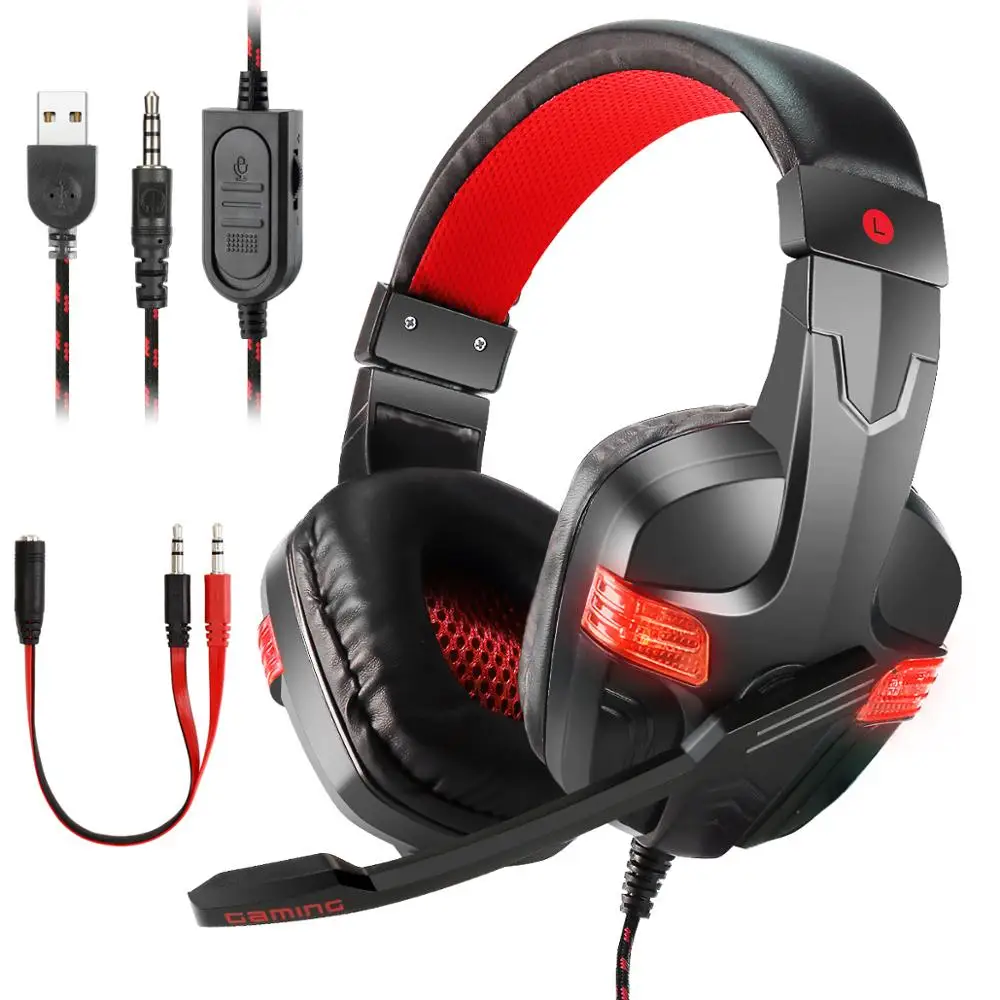MO860 лучшая игровая гарнитура геймер шлем глубокий бас Игровые наушники для PS4 Xbox One компьютер ПК ноутбук с микрофоном светодиодный