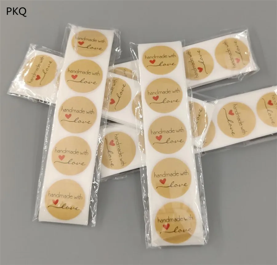 Диаметр 2,5 см ручной работы с любовью бумажный стикер Круглый крафт клей наклейки для выпечки продукты посылка Печать стикер s 100 шт