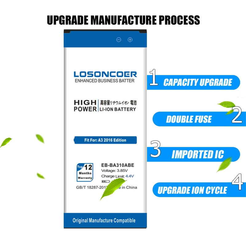 4..Высокая емкость с lonG Время в режиме ожидания.Бренд LOSONCOER battery