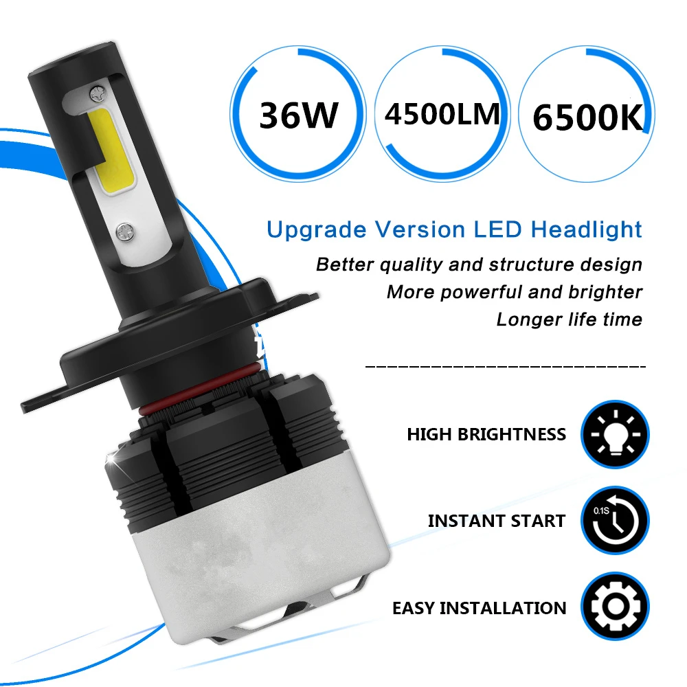 1 шт. H4 светодиодный фара для мотоцикла лампа 4500LM 36 Вт Hi/Lo конверсионный комплект 6500K Moto супер яркие светодиодные лампы для фар светодиодный налобный фонарь