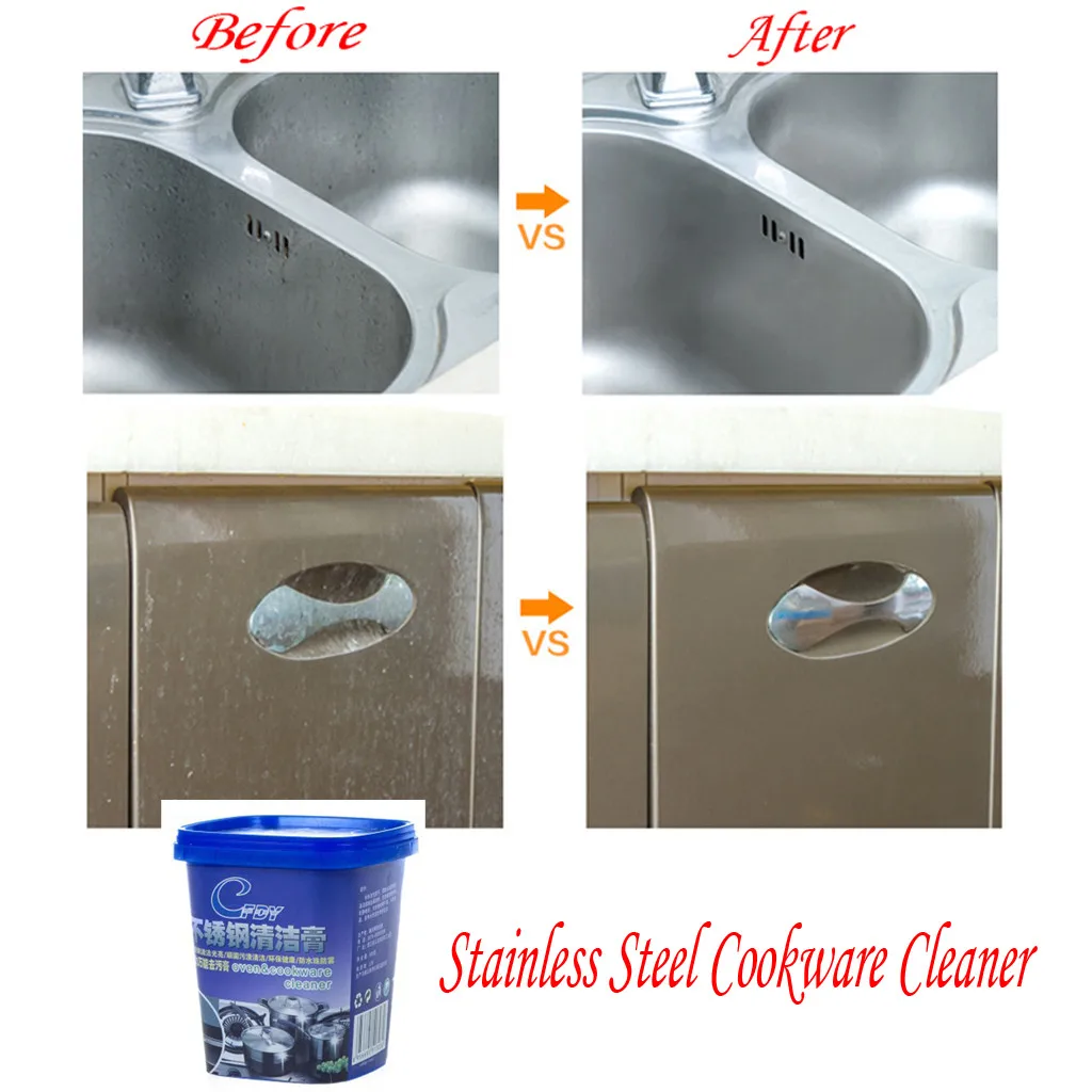 Эта очистка из нержавеющей стали безопасно удаляет наработанные жиры, пятна, ржавчину И масштаб, окисление, водяные знаки, чернила, коррозии, потертости, постоянные Маркер и многое другое.