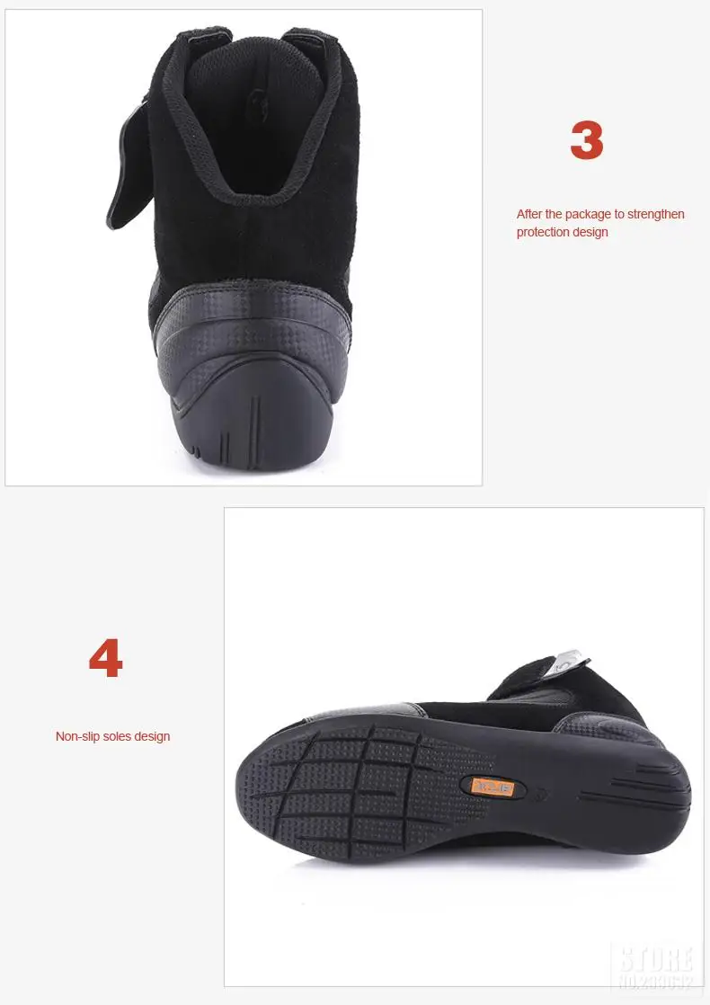 Характеристика: Верх из натуральной коровьей замши и сетчатой ткани BK, высокая износостойкость, обеспечивает отличный комфорт и гибкость Дышащая сетчатая подкладка обеспечивает сухость ног и комфорт при длительных влажных прогулках Принимает 2 системы закрытия с крючком и петлей и шнурками, обеспечивает хорошую удобную и безопасную посадку Усиленная защита на носке, пятке и лодыжках, обеспечивает отличную поддержку и безопасность Высота голенища примерно 18 см от дужки Подошва из натуральной резины обеспечивает превосходное сцепление с нескользящей подошвой и обеспечивает естественную эластичность Панель переключения передач обеспечивает идеальное сцепление и обработку Спецификация: Состояние: абсолютно новый Материал верха: коровья замша + сетка BK Материал подошвы: Резина Товар включает: 1 пару мотоциклетных сапог Обратите внимание: пожалуйста, выбирайте сапоги по длине стопы, спасибо