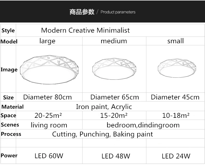 Диаметр: 80CM/60BT Температура; Один цвет/ трехцветный Подходит :20-25㎡ Диаметр: 65см /48BT Температура; Один цвет/ трехцветный Подходит :15-20㎡ Диаметр: 45см /24BT Температура;Один цвет/ трехцветный Подходит :8-18㎡ Напряжение: 110-220 В Пульт дистанционного управления: Да (только яркость) Регулировка яркости: Да (только Dimamble яркость) Цвет корпуса: белый Источник света включен или нет: Да Гарантия: 3 года Внимание: 1. Холодный белый: только один цвет (6000 K-6500 K), без пульта дистанционного управления. 2. Теплый белый: только один цвет (3000 K-3500 K), без пульта дистанционного управления. 3. Яркость Dimmale: он имеет холодный белый, теплый белый, он может регулировать яркость и цвет. (включая пульт дистанционного управления) Дорогой клиент ! Выбирая люстру, необходимо учитывать размеры комнаты и температуры. Мы поможем вам сделать правильный выбор модели. Наш номер в what's 86-15011564681. Напишите нам и мы ответим на все вопросы и поможем вам выбрать светильник на ваш вкус!!