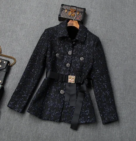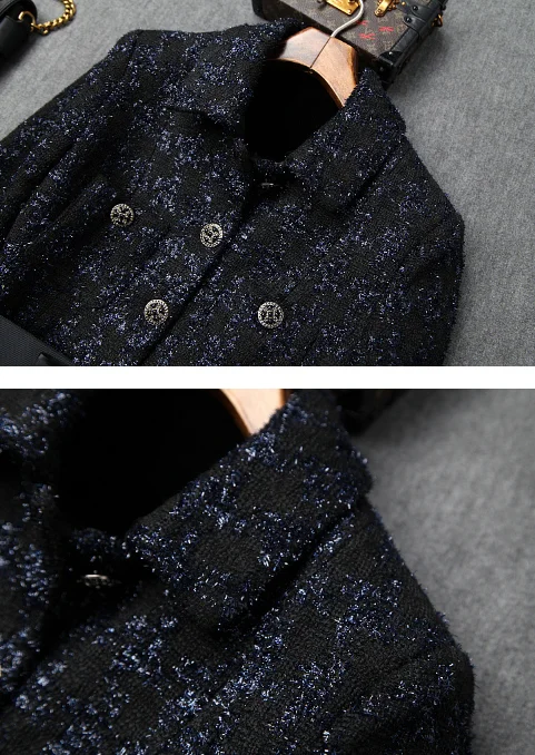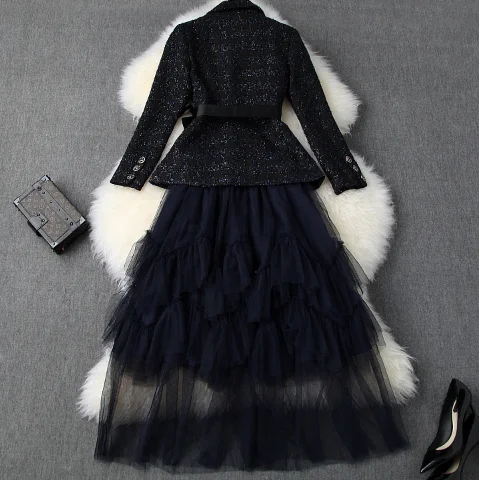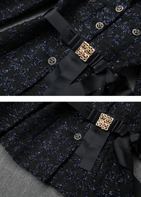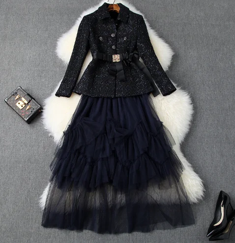 Осенне-зимняя женская новая твидовая куртка с бантом на талии + сетчатая плиссированная юбка, костюм T3720