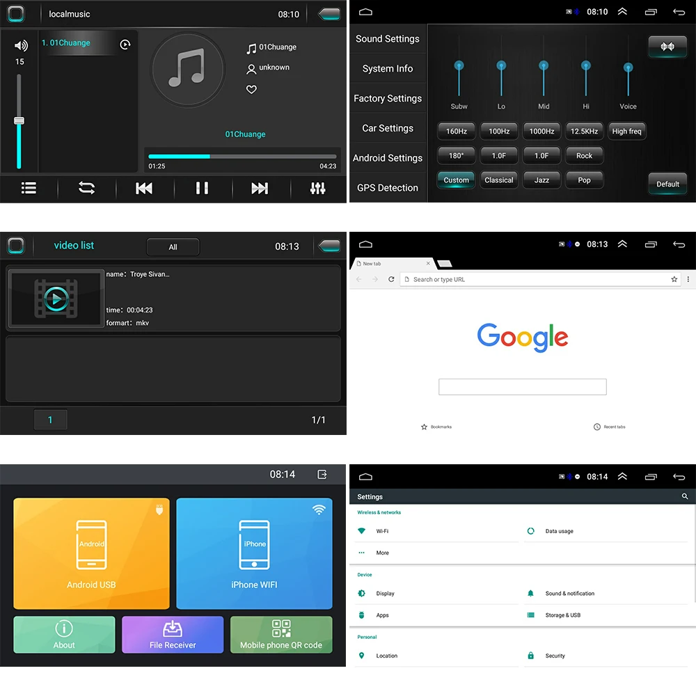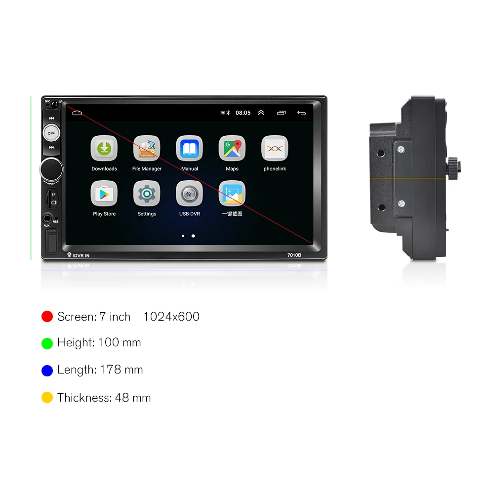 Features:●HD 7'' auto radio mp5 player●Upgraded Dual system mirror link:IOS/Android mirror linkIOS one-way:IOS supports mobile phone one-way projection to the machineAndroid two-way:Android supports mobile phone two-way connection●Built-in GPS Navigation: Users can purchase directly from play store for offline navigation. With wifi connected, Google Maps can be used perfectly, you can go anywhere you want and never get lost again.● Built-in WIFI: Connect to WIFI, and you will find a new world,the most convenient one is the online map.●Rear view camera: Need to choose the camera,the car is connected to the reverse gear to automatically switch(requires optional)●Steering wheel control: Through it you can control the functions you need by steering wheel, more convenient●Built-in Bluetooth with A2DP/Hands Free/Phone book:Bluetooth hands-free calls,Bluetooth music player,Auto loading phonebooks●Driving recorder: You can choose a recorder, and the car has playback, the evidence can be retained●Support file manager: Support download, install and delete over thousands of android apps●Support multilanguage: Support languages, up to 40 national languages●You can enjoy music from you mobilephone without any cables, and also support USB connetion.●FM Radio: Online music you can transfer the music to the car stereo by FM to enjoy the original car stereo sound,with 18 preset stations● Time Setting:You can use the network or GPS to open the date and time automatically, or you can adjust it manually.Specifications:System:Android 8.1Chipset:8227L-DEMOScreen size:7''Memory:1GB (RAM)+16GB (ROM)Screen resolution:1024*600Mirror link:Android/IOSRadio chip:NXP6851Power output:4*45WWork temperature:-40℃-80℃Steering wheel control function:SupportBluetooth version:4.0Power amplifier chip:AC7315Radio Band:FMVideo output:SupportMaps:Built-in offline mapsWIFI:SupportUSB: USB interfaceCar logo change:SupportAudio format:APE/FLAC/WAV/MP3/WMA etcVideo format:MKV/RMVB/AVI/MP4/MDV etcPicture format:PNG/JPEG/JPG/GIF/WBMP/BNP etcFactory setting keyword:8888Language:Chinese/English/French/Italian/Korean/Japanese/Arabic/Spanish/Portuguese/Russian/Turkish/Vietnamese/Hebrew/Polish/German