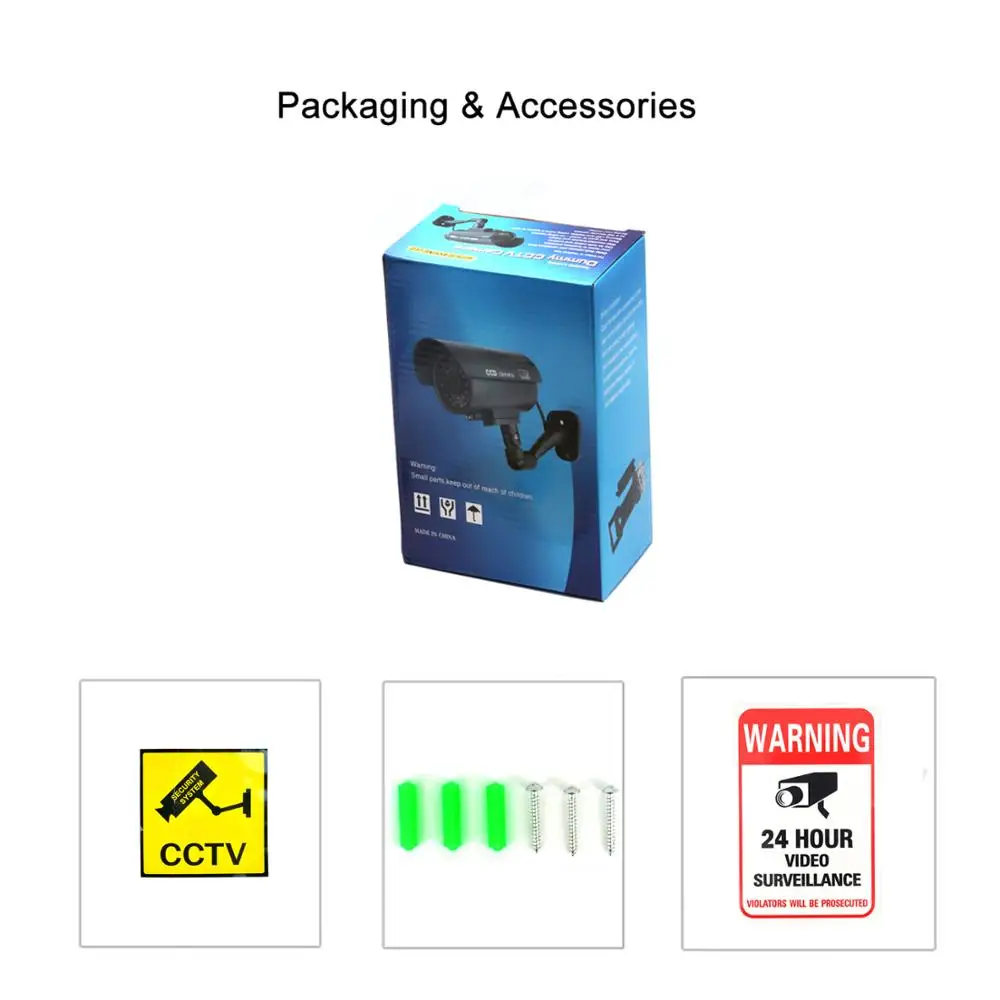 Это поддельная камера с красным светодиодный, который легко устанавливается и выглядит как настоящая камера. Злодей/Вор трудно отличить его от настоящей камеры видеонаблюдения. Особенности и технические характеристики: 1. Очень реалистичные виртуальные камеры могут остановить совершаемые вокруг вашего дома, магазина и склада; 2. Дешево может эффективно уменьшить бюджет мониторинга; 3. Установка Быстрая и простая; 4. Встроенный мигающий светодиод, нужен только два 2x батарейки AAA (не входят в комплект); 5. Подходит для использования в помещении и на улице;
