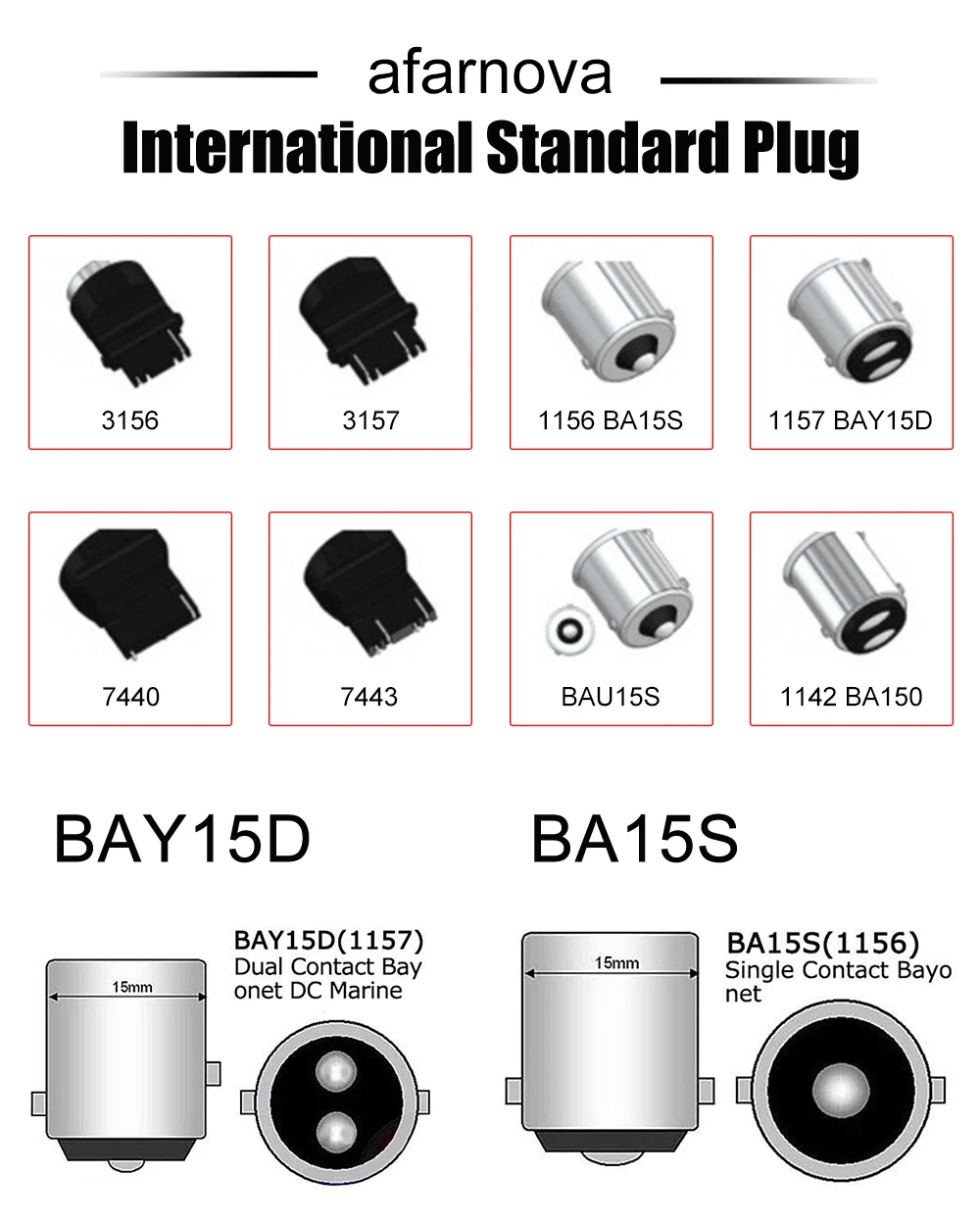 1156 BA15S/1157 BAY15D/7443 T20/3157 T25