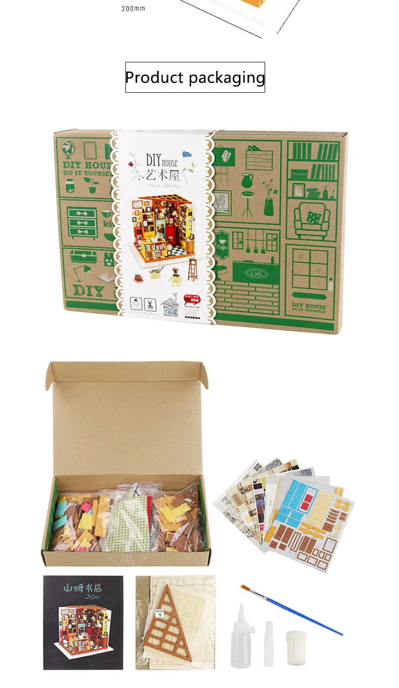 Материалы: включают: дерево, металл, ткань, бумагу и т. Д. Посылка содержит: Светодиодный светильник, горелка, мебель, инструкции на английском языке, другие аксессуары, как показано на картинке. Обратите внимание: Батареи, пигмент и клей запрещены при международной доставке, Мы должны вынуть их, если ваш заказ по воздуху. (Литий Батарея Тип: 2 шт. 3В CR2032) Спасибо за понимание.