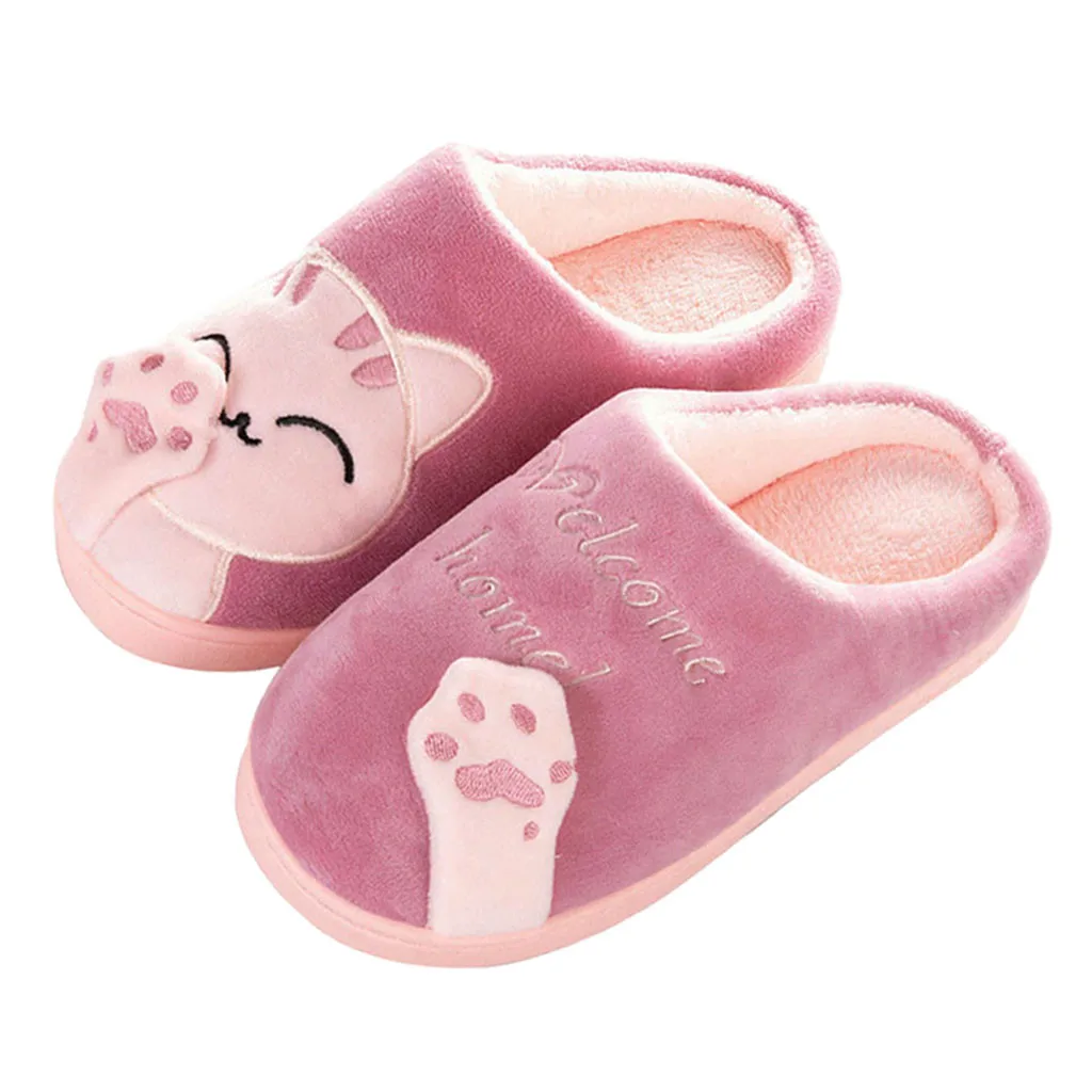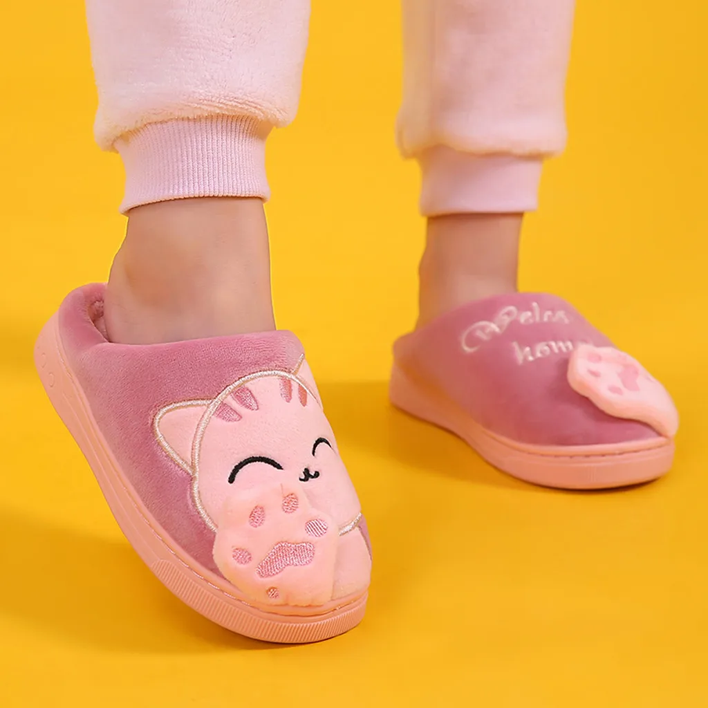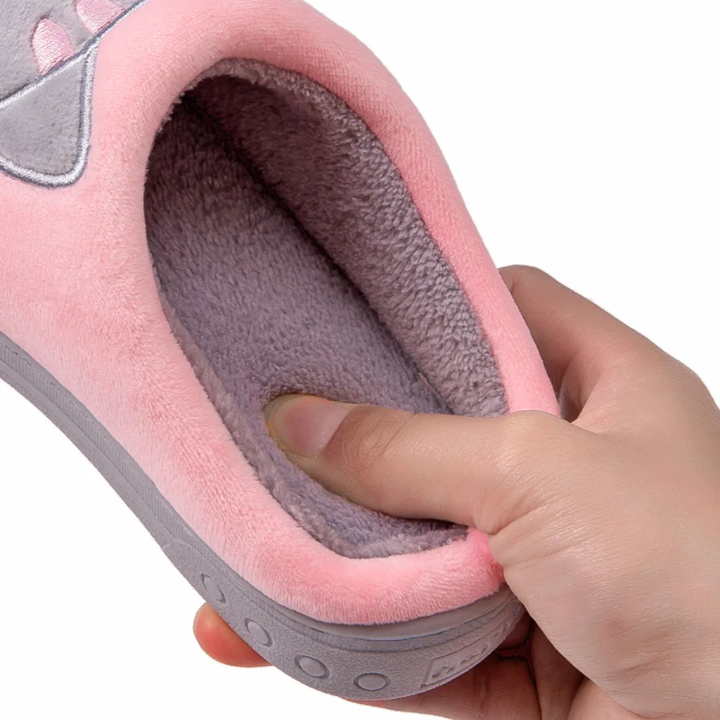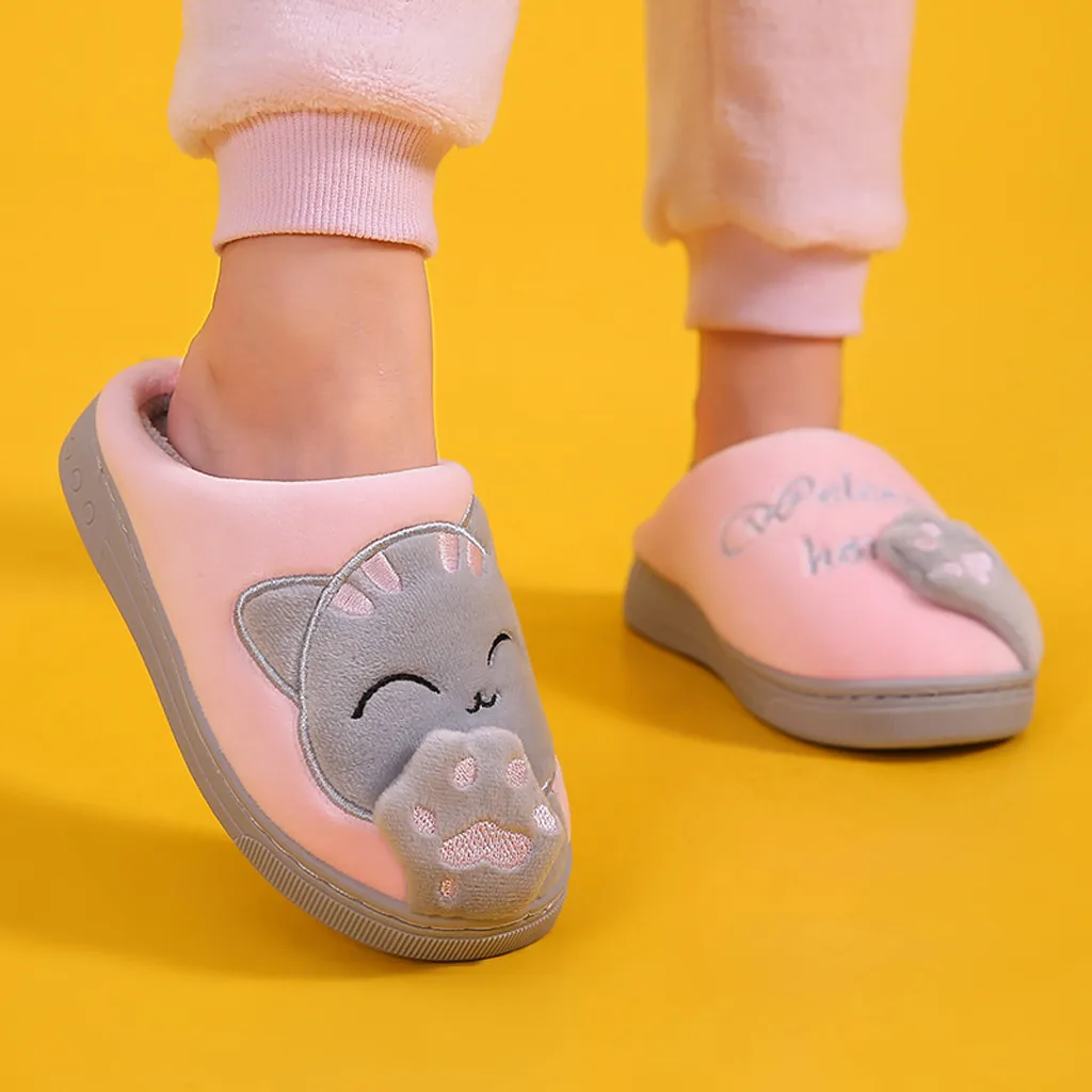 Зимние тапочки для маленьких мальчиков и девочек; Нескользящие тапочки с рисунком кота Для дома В помещении;