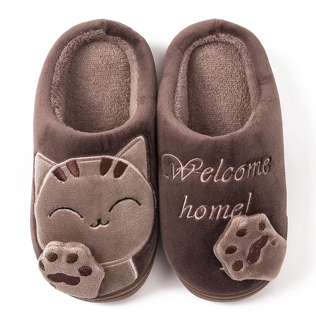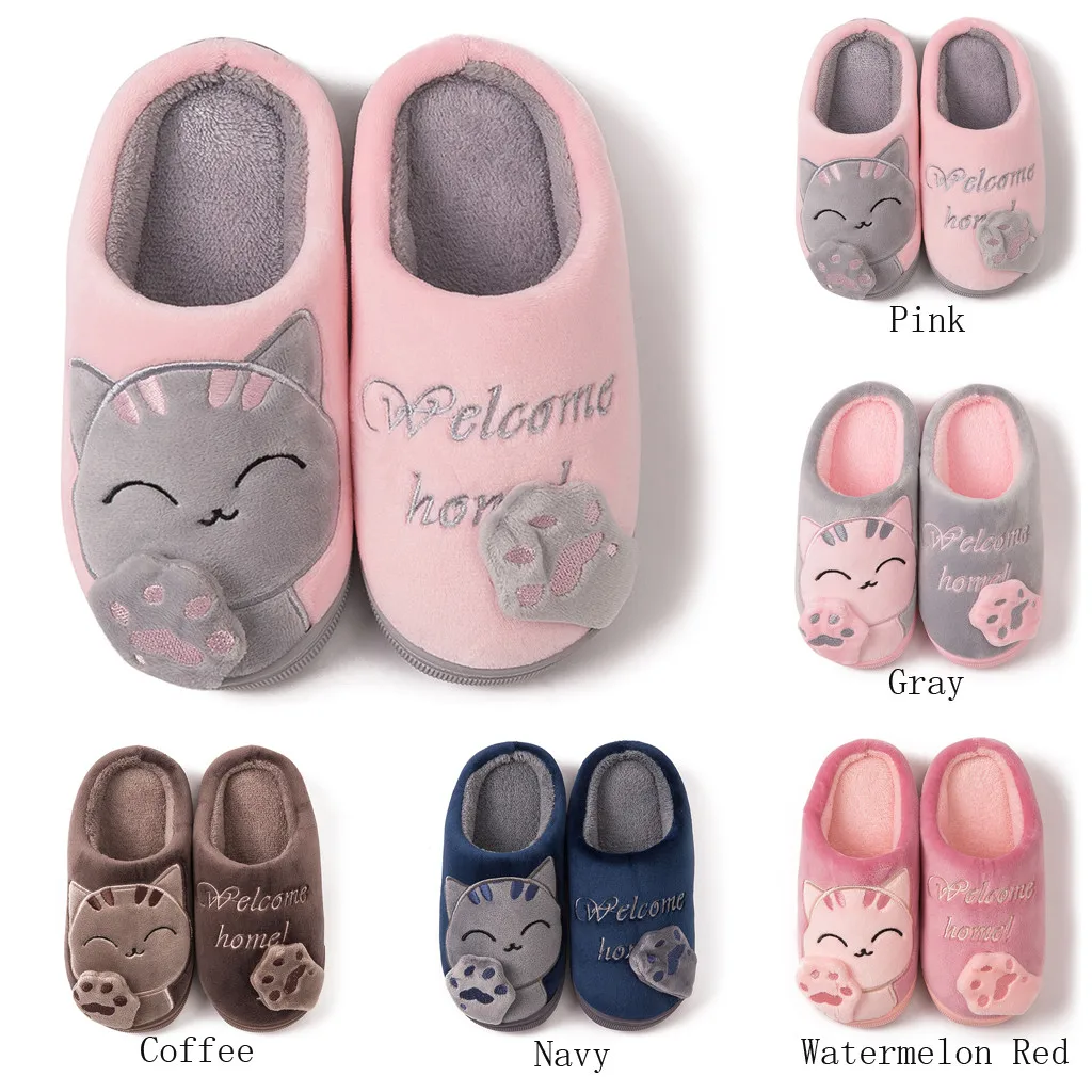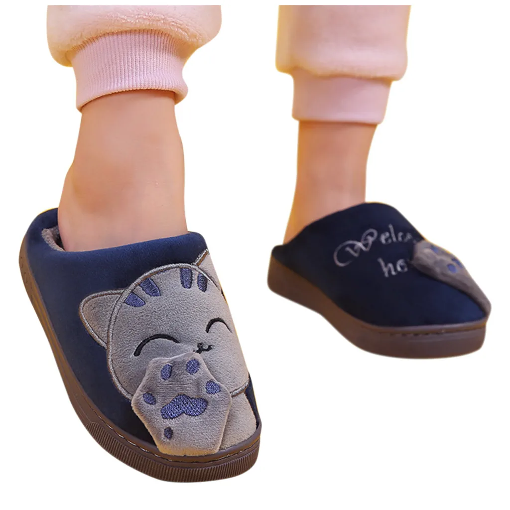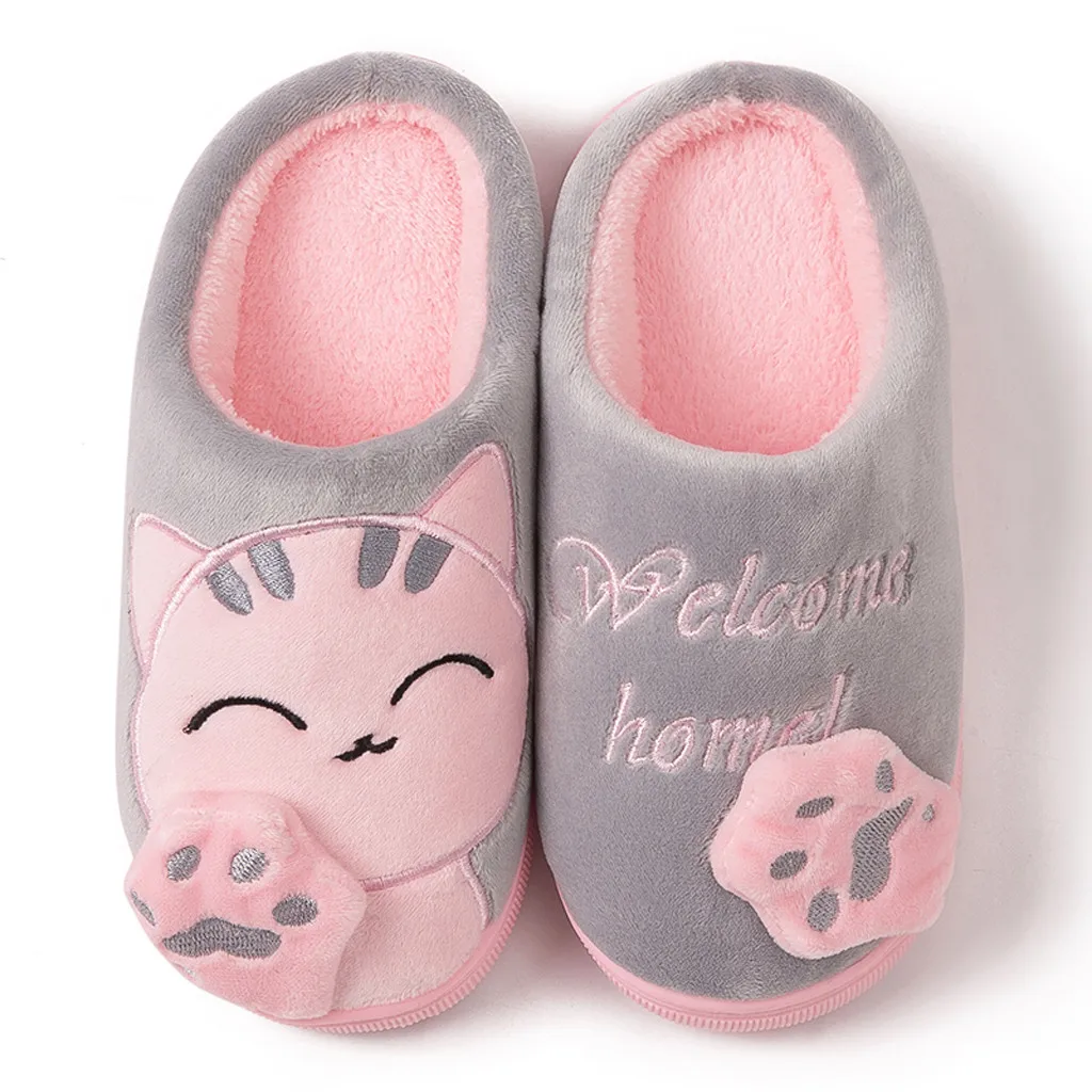 Зимние тапочки для маленьких мальчиков и девочек; Нескользящие тапочки с рисунком кота Для дома В помещении;