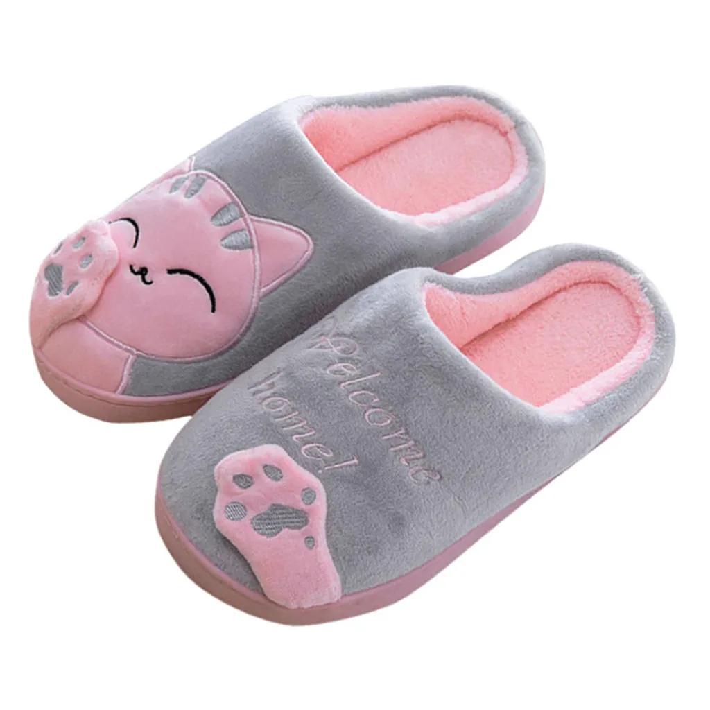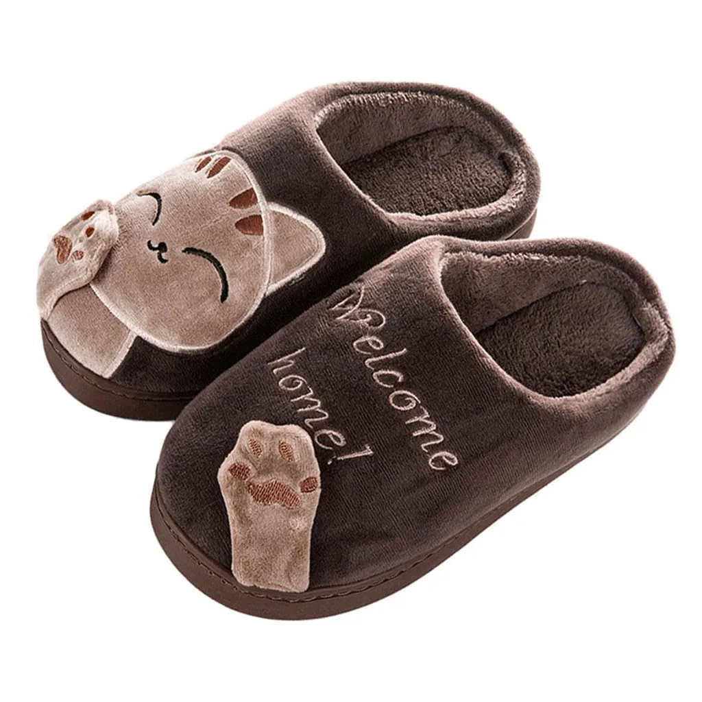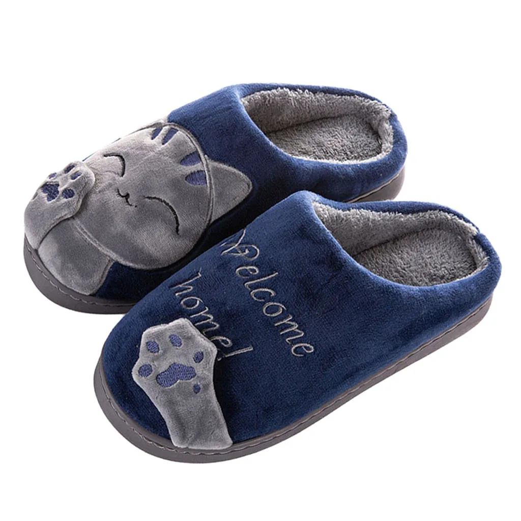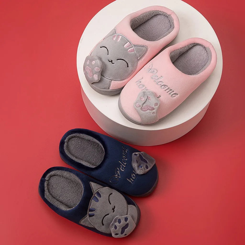 Зимние тапочки для маленьких мальчиков и девочек; Нескользящие тапочки с рисунком кота Для дома В помещении;