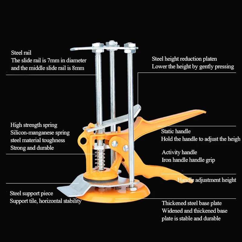 Металлическая конструкция Сильнее подшипник Свободы работы Простая регулировка Модель: DW-75 Диапазон регулировки высоты: 1-10 см Диапазон подшипников: Максимальная нагрузка 80 кг Диаметр основания: 10 см Материал изделия: металл Вес нетто: 0,75 кг Количество опорных столбцов: 3 Область применения: Сложенные высокие плитки Цвет: желтый